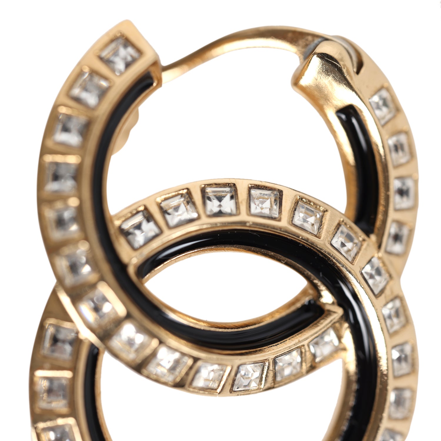 Chanel Crystal CC Earrings Black Enamel & Gold Hardware