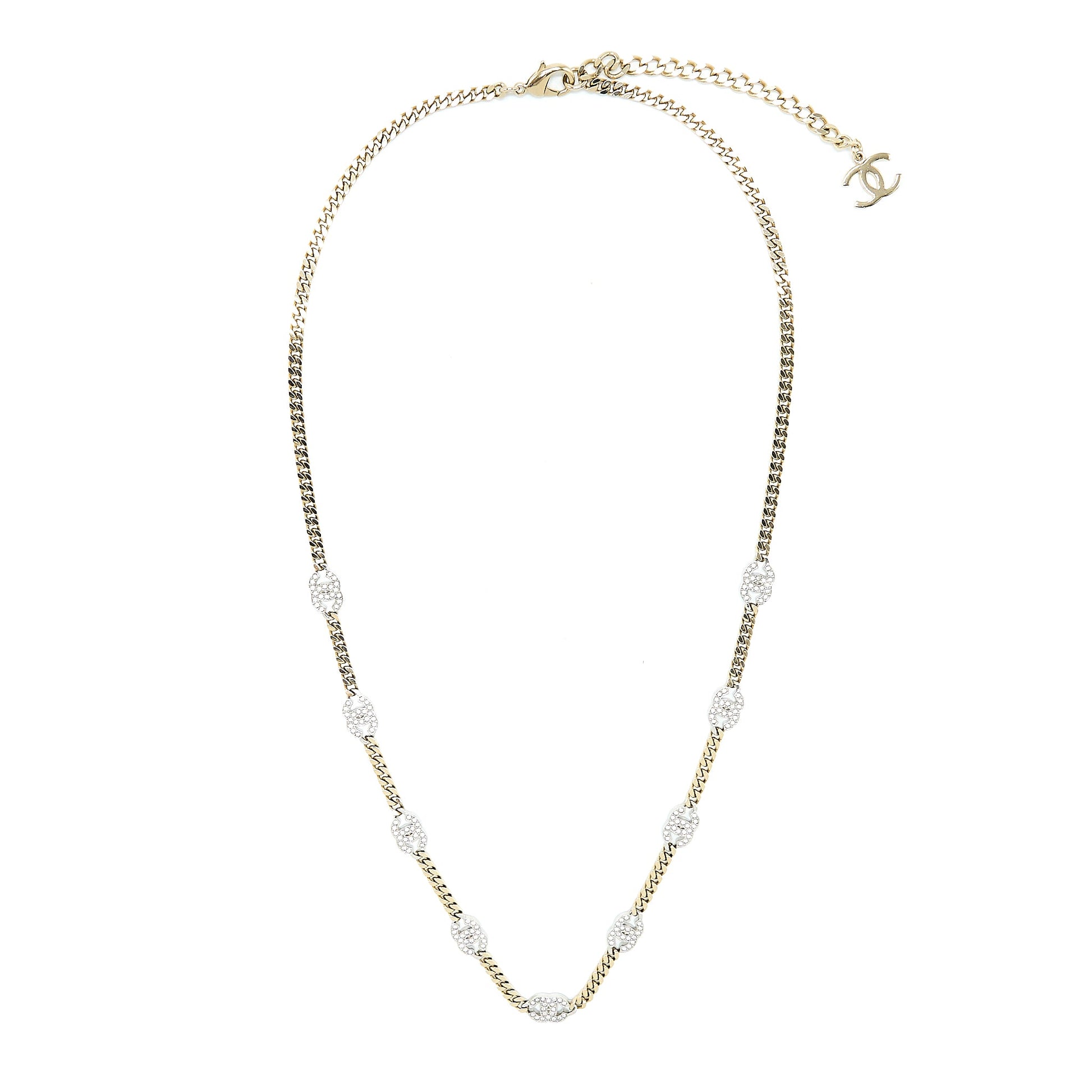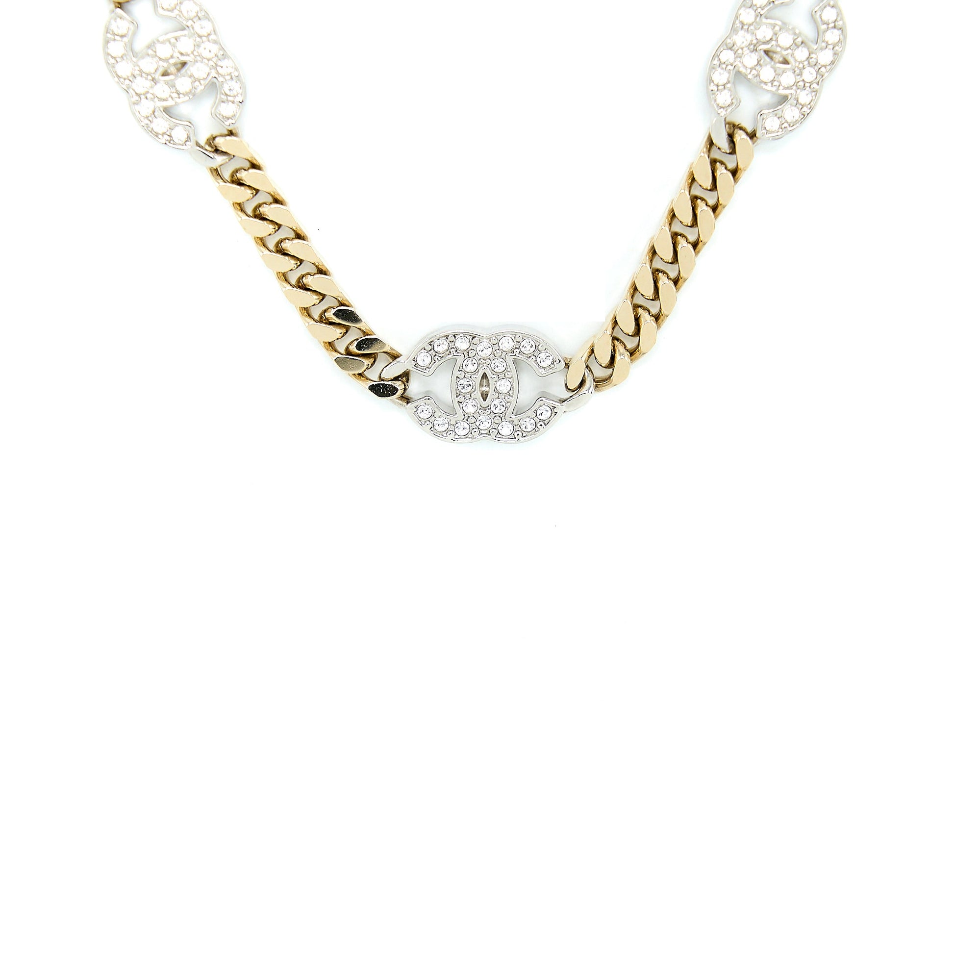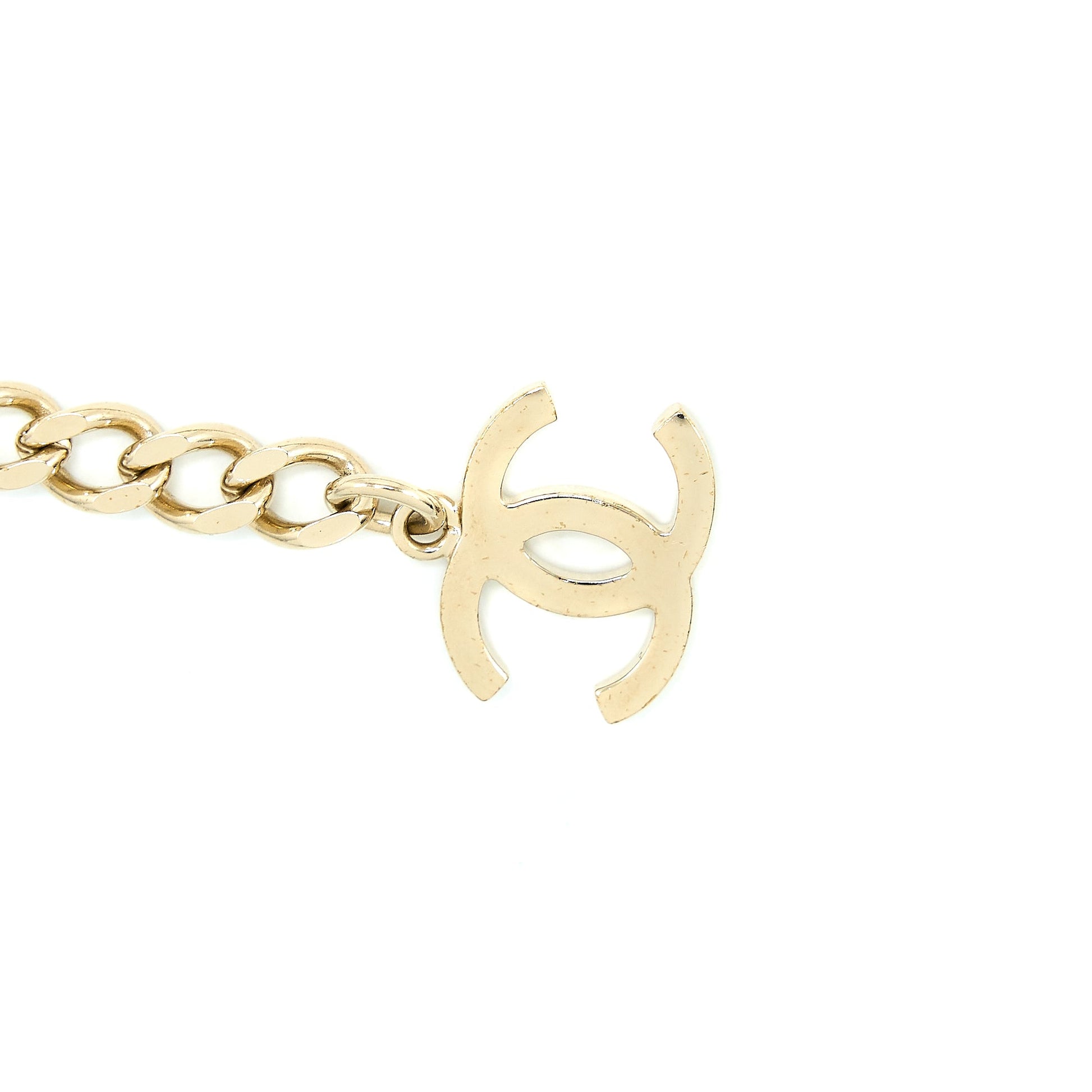 Chanel Crystal CC Logo Waist Chain Belt Light Gold Tone