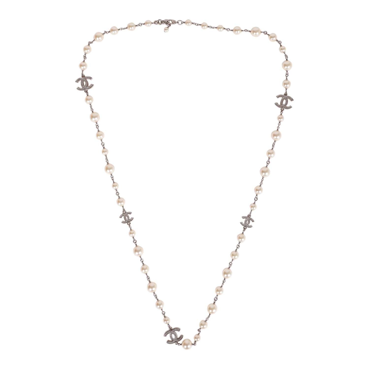 Chanel Crystal Imitation Pearl CC Sautoir Long Necklace
