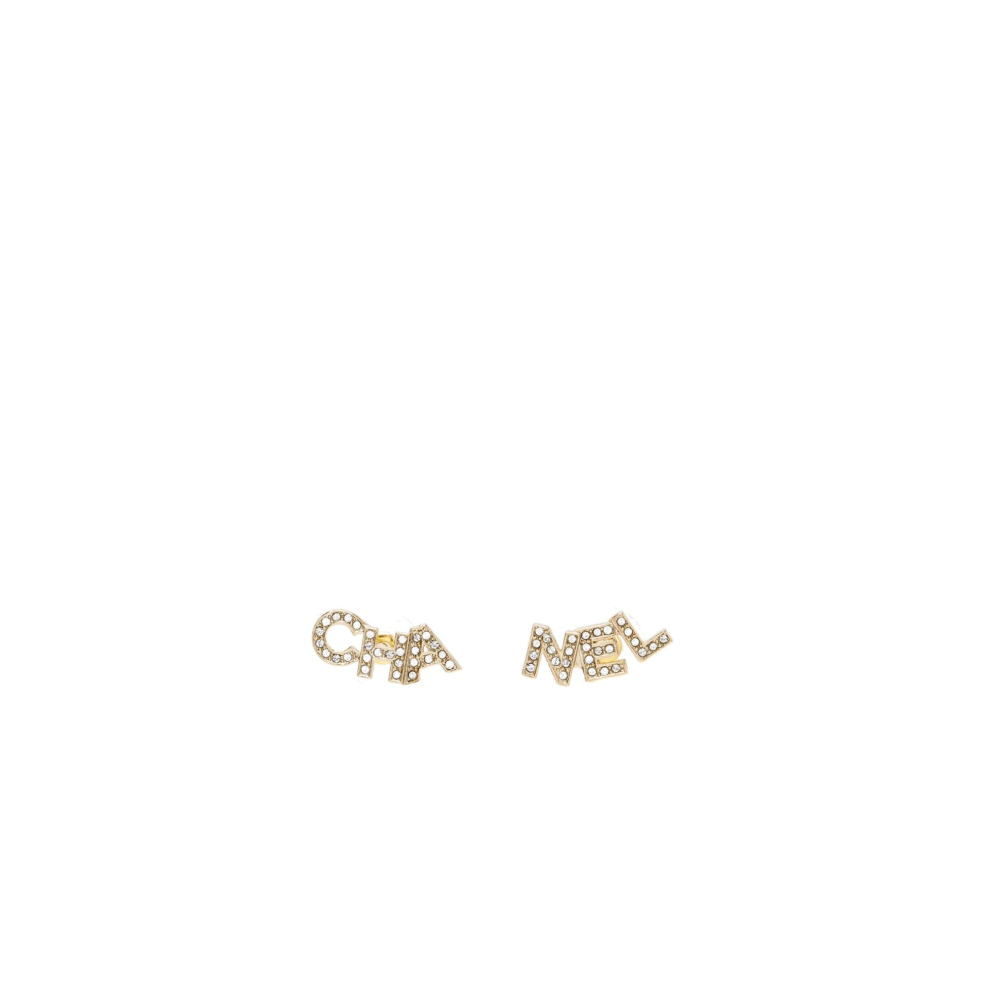 Chanel Crystal Letter Logo Earring Light Gold Tone