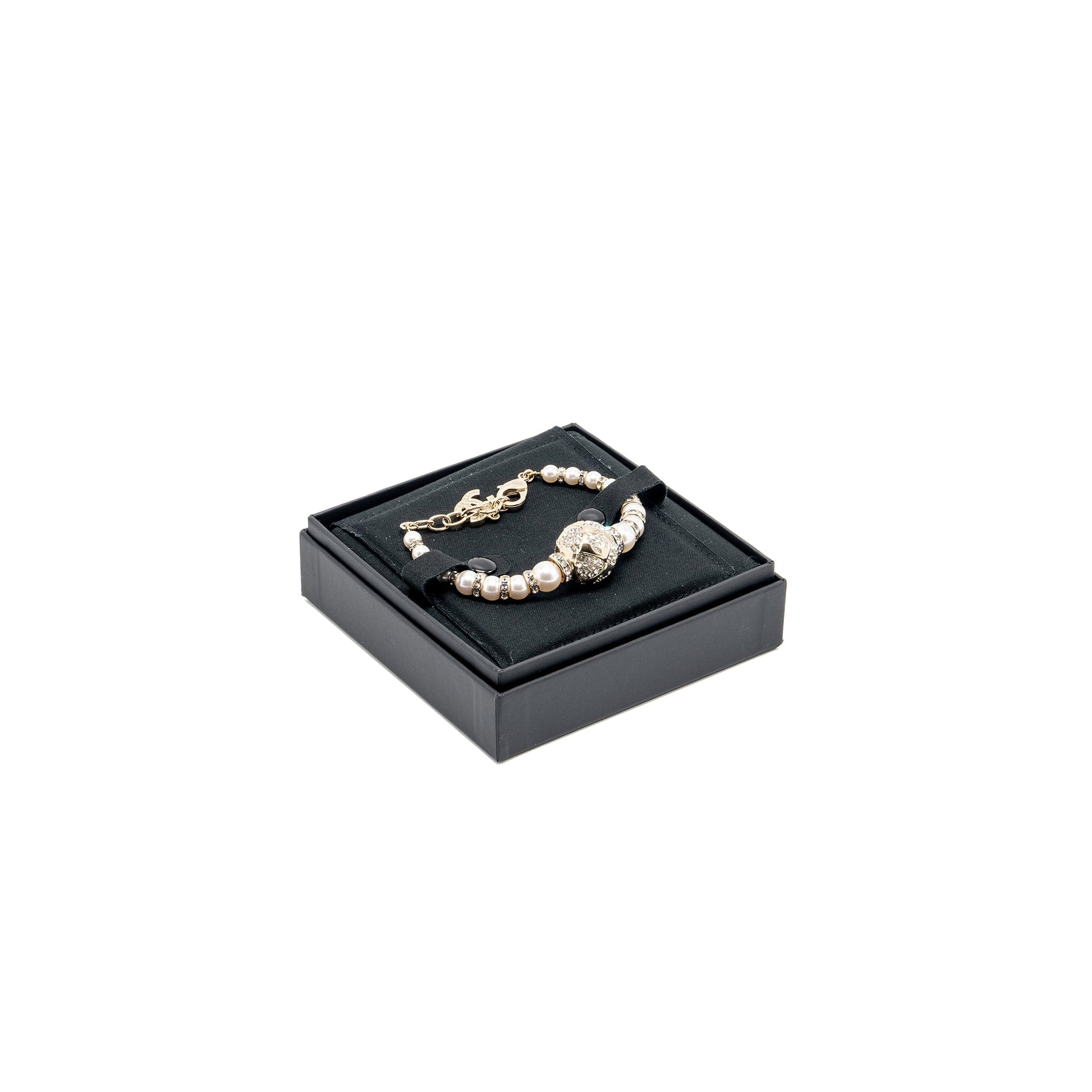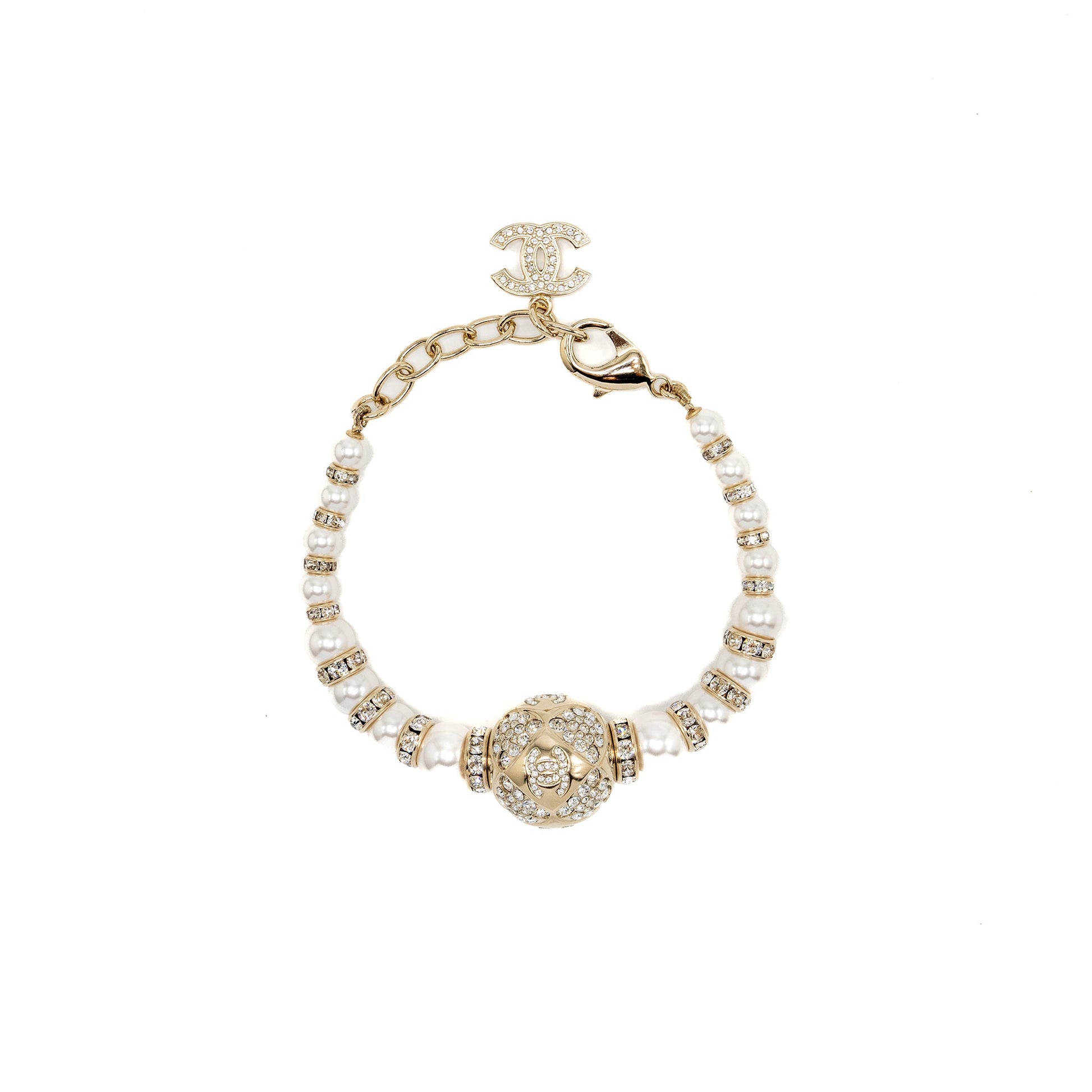 Chanel Crystal & Pearl CC Logo Bracelet Light Gold Tone