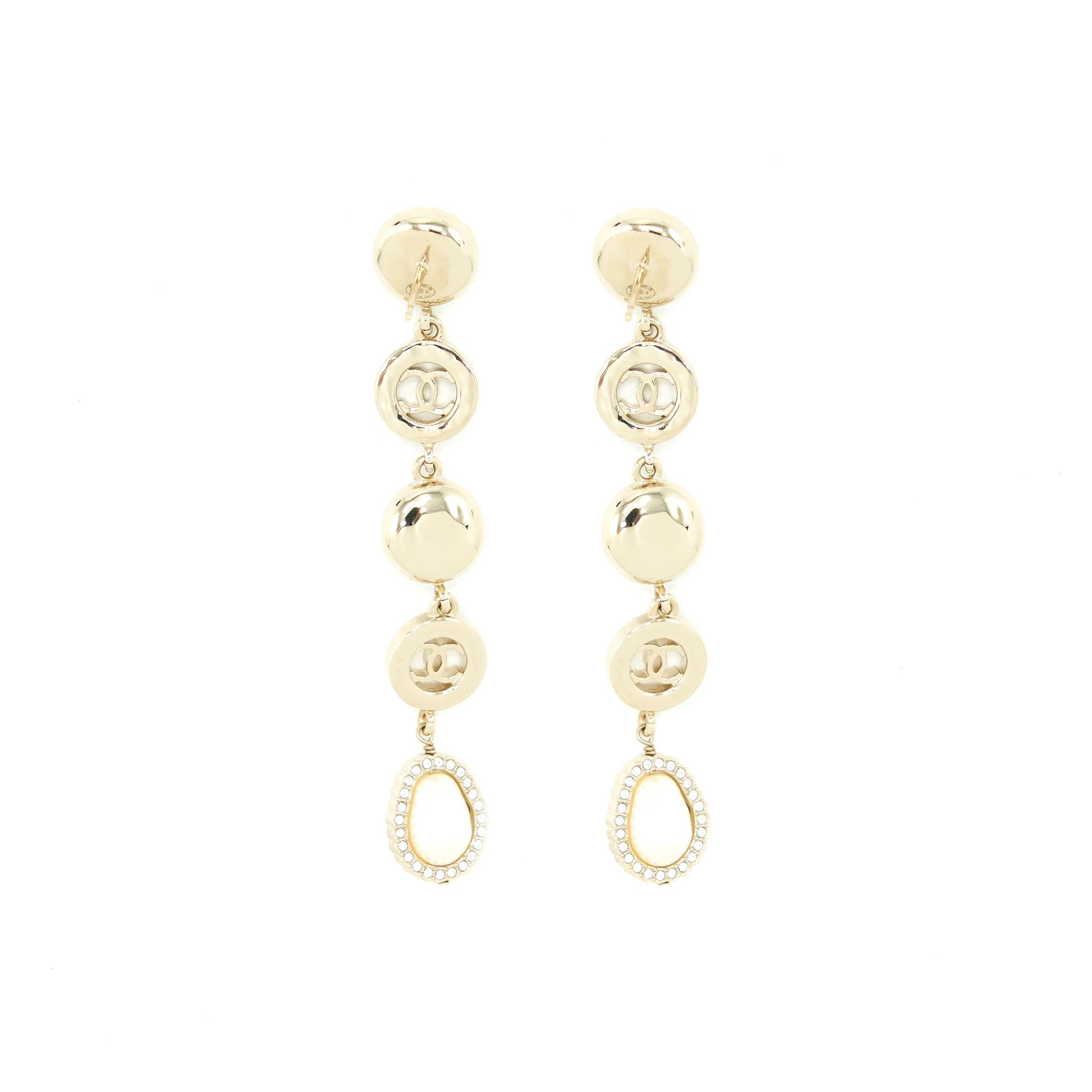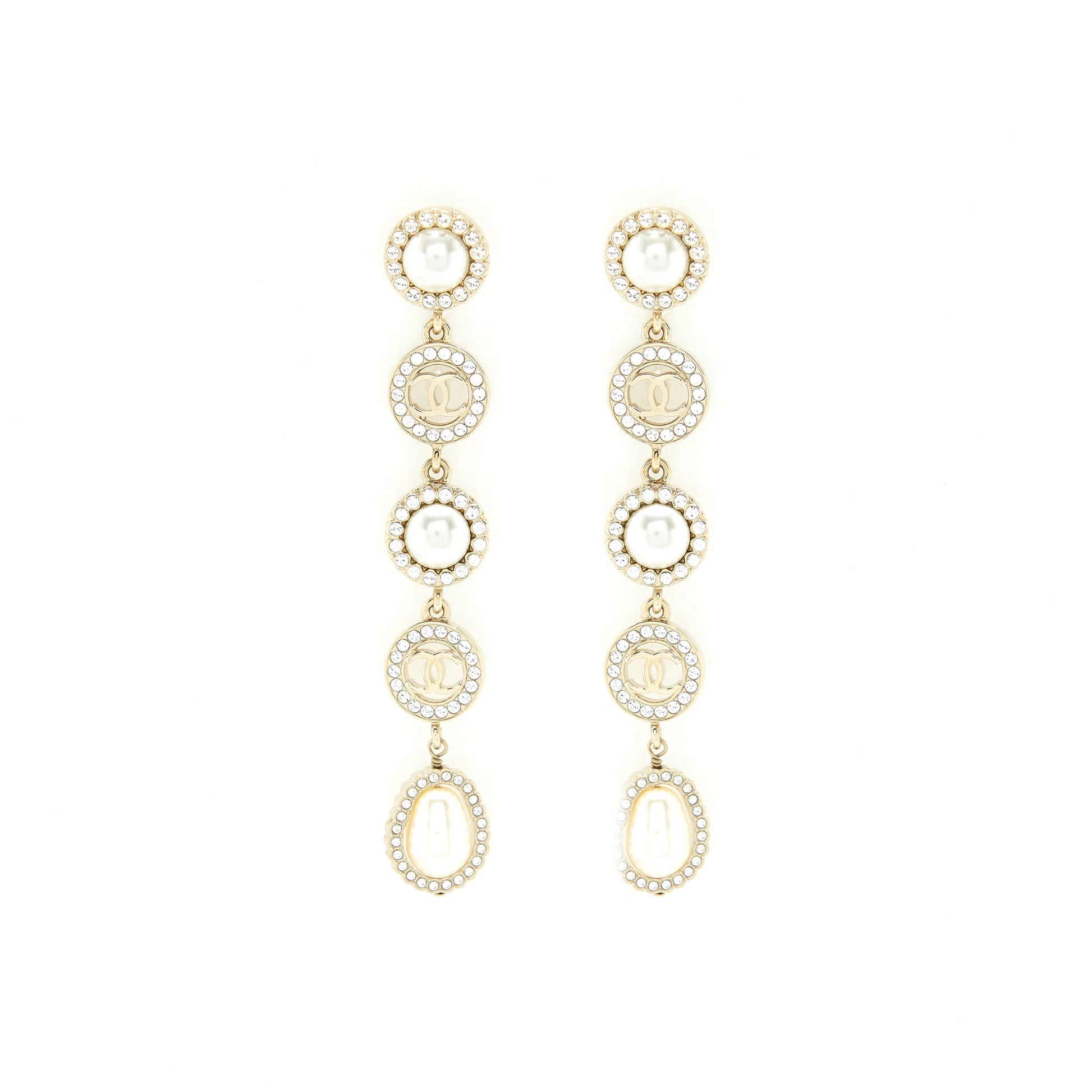 Chanel Crystals CC Logo And Pearls Round Drop Earrings L