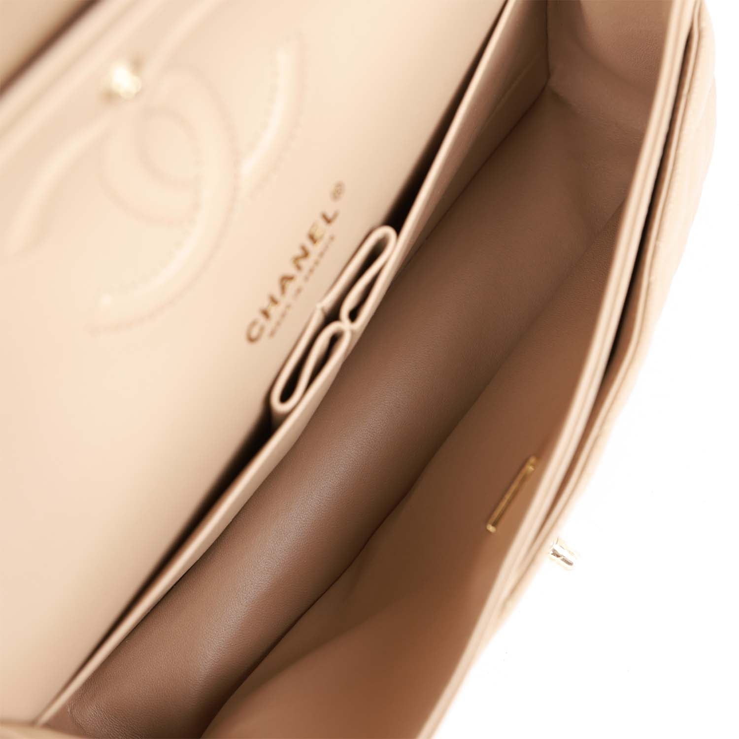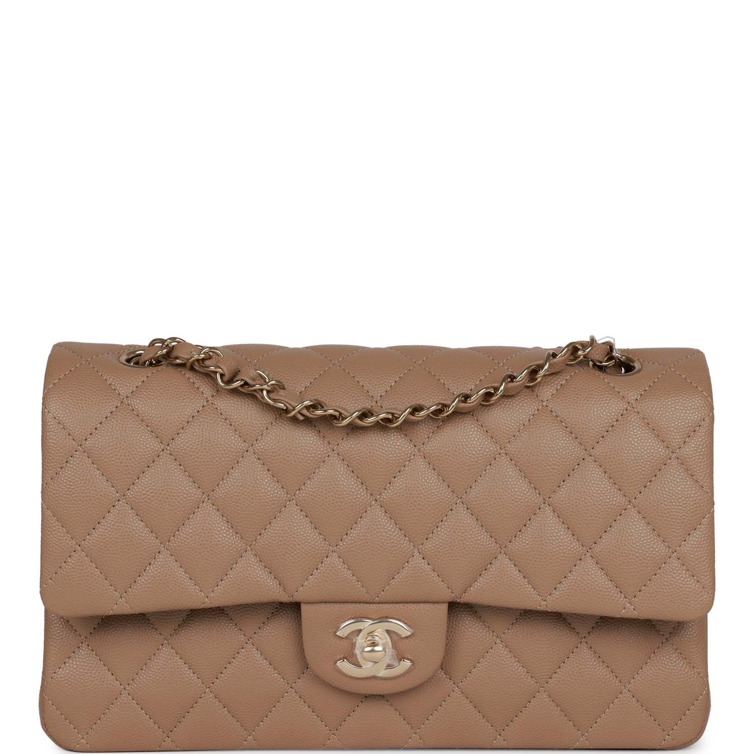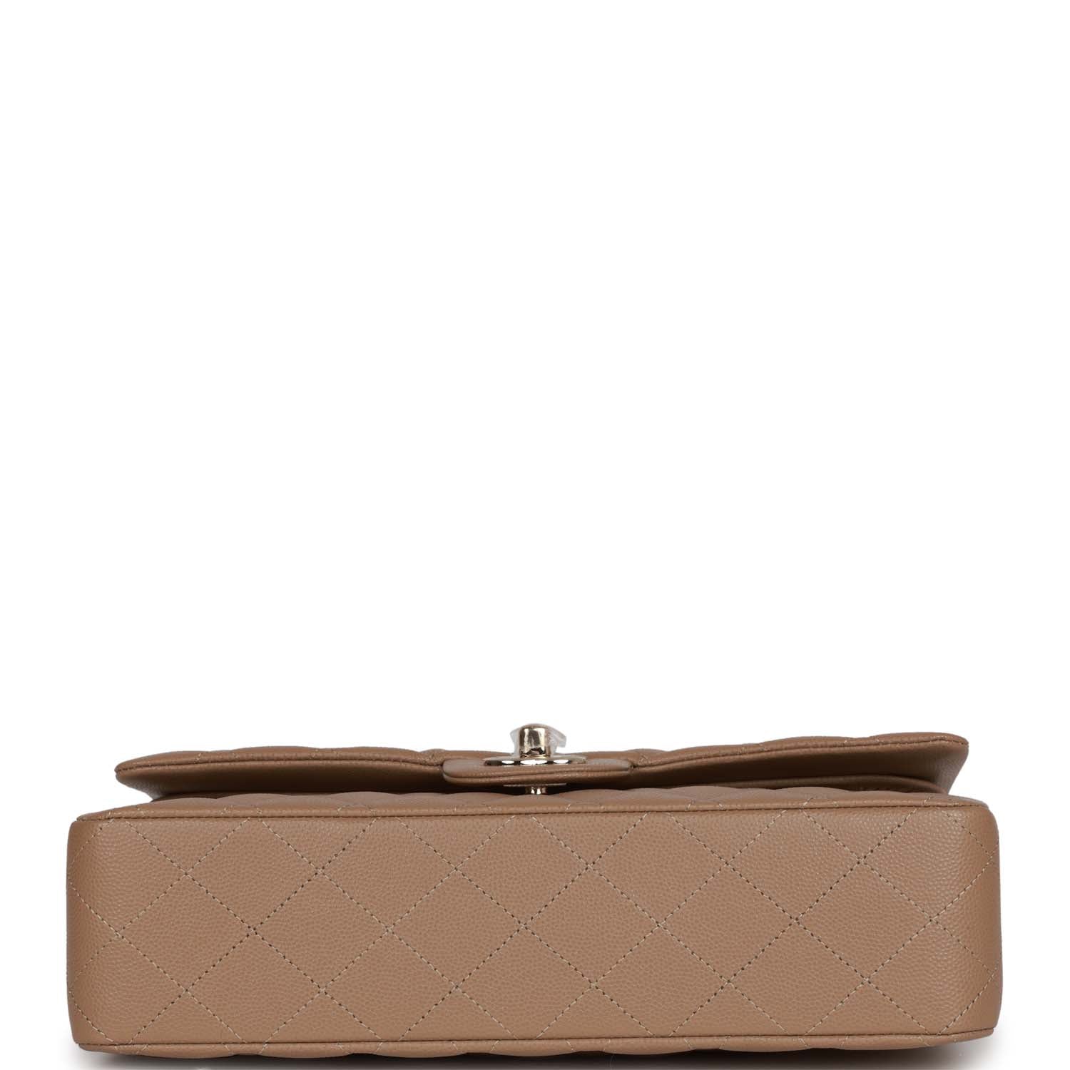 Chanel Medium Classic Double Flap Bag Dark Beige Caviar Light Gold Hardware