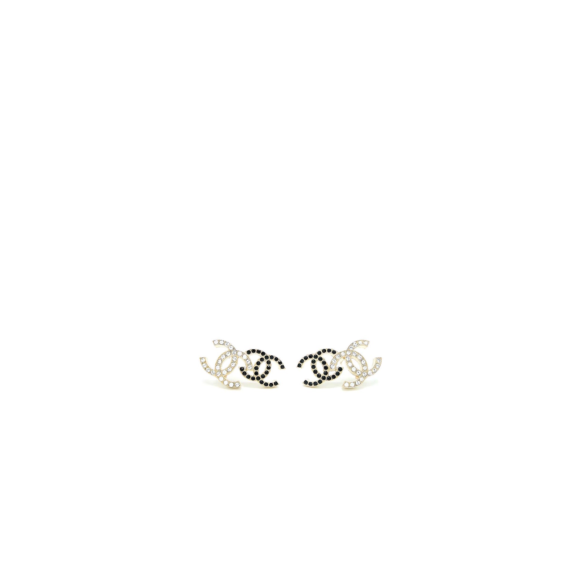 Chanel Double CC Logo Crystal Earrings Black and White Light Gold Tone