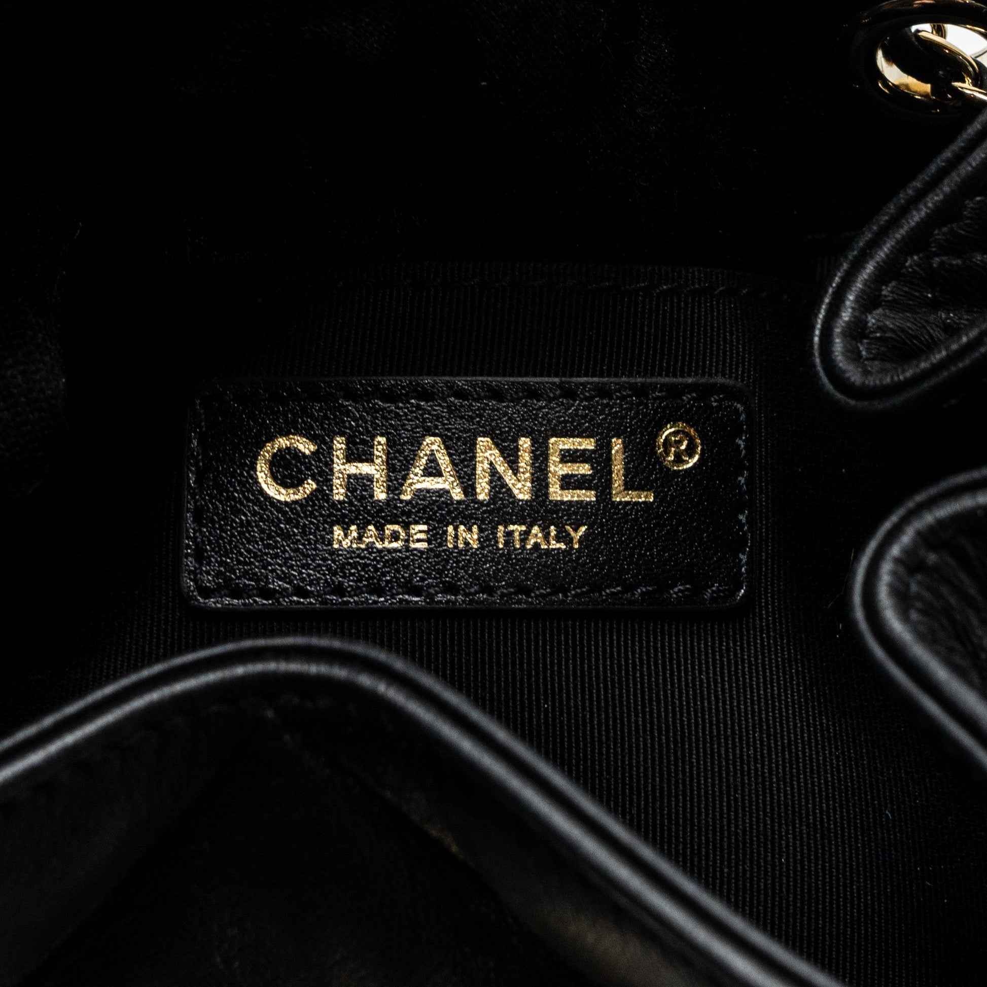 Chanel Drawstring Bucket Bag Calfskin Black L