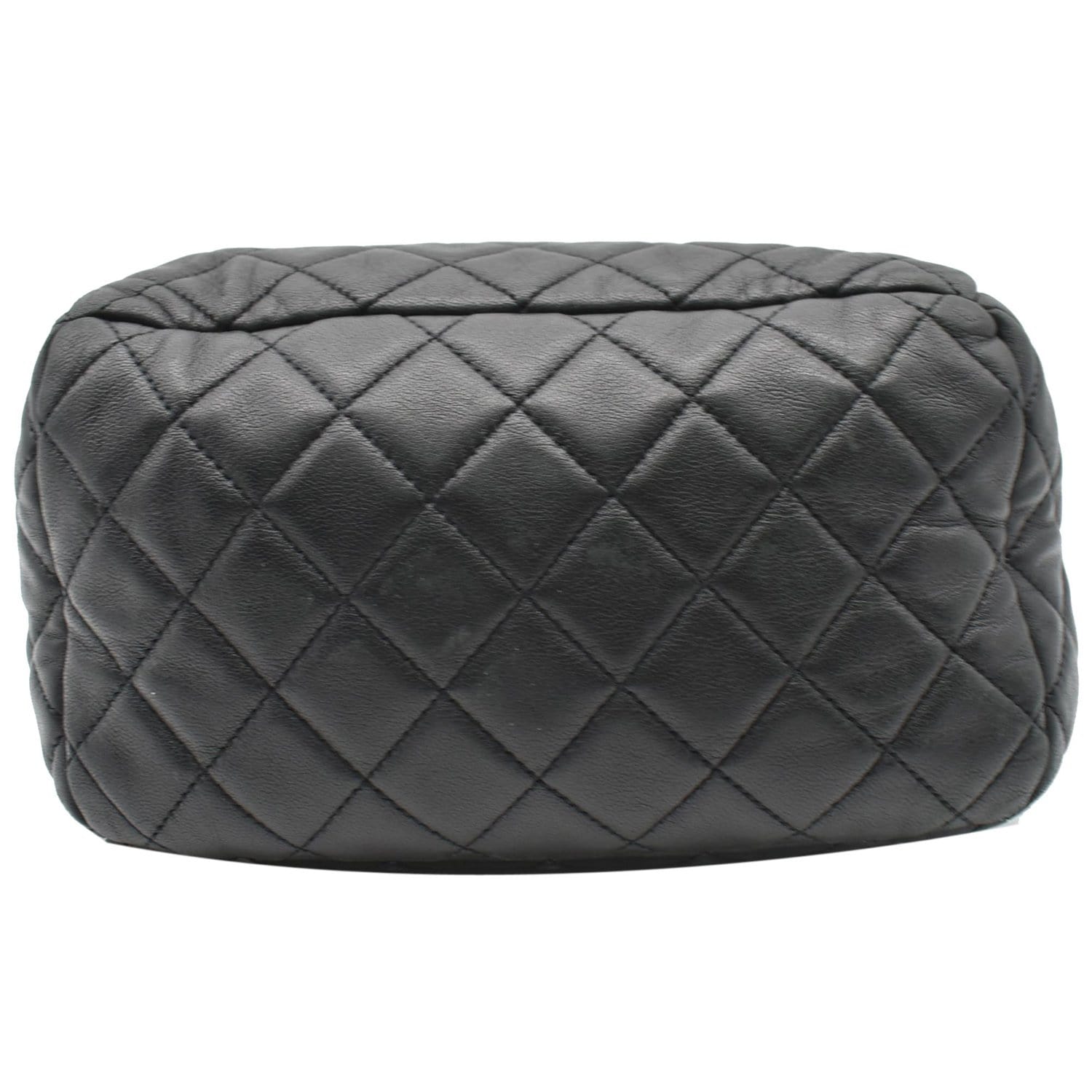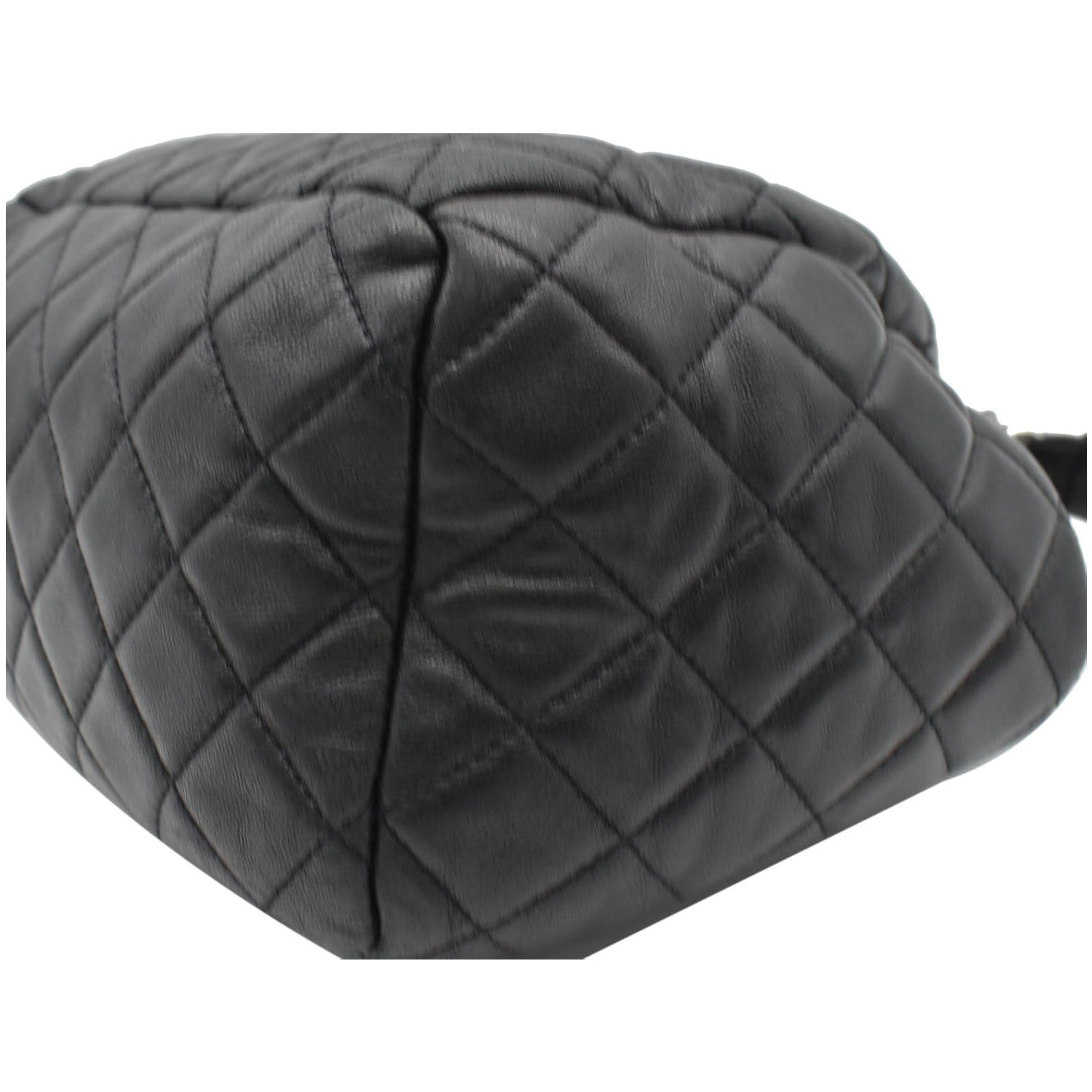 CHANEL Drawstring Bucket Quilted Lambskin Leather Shoulder Bag Black