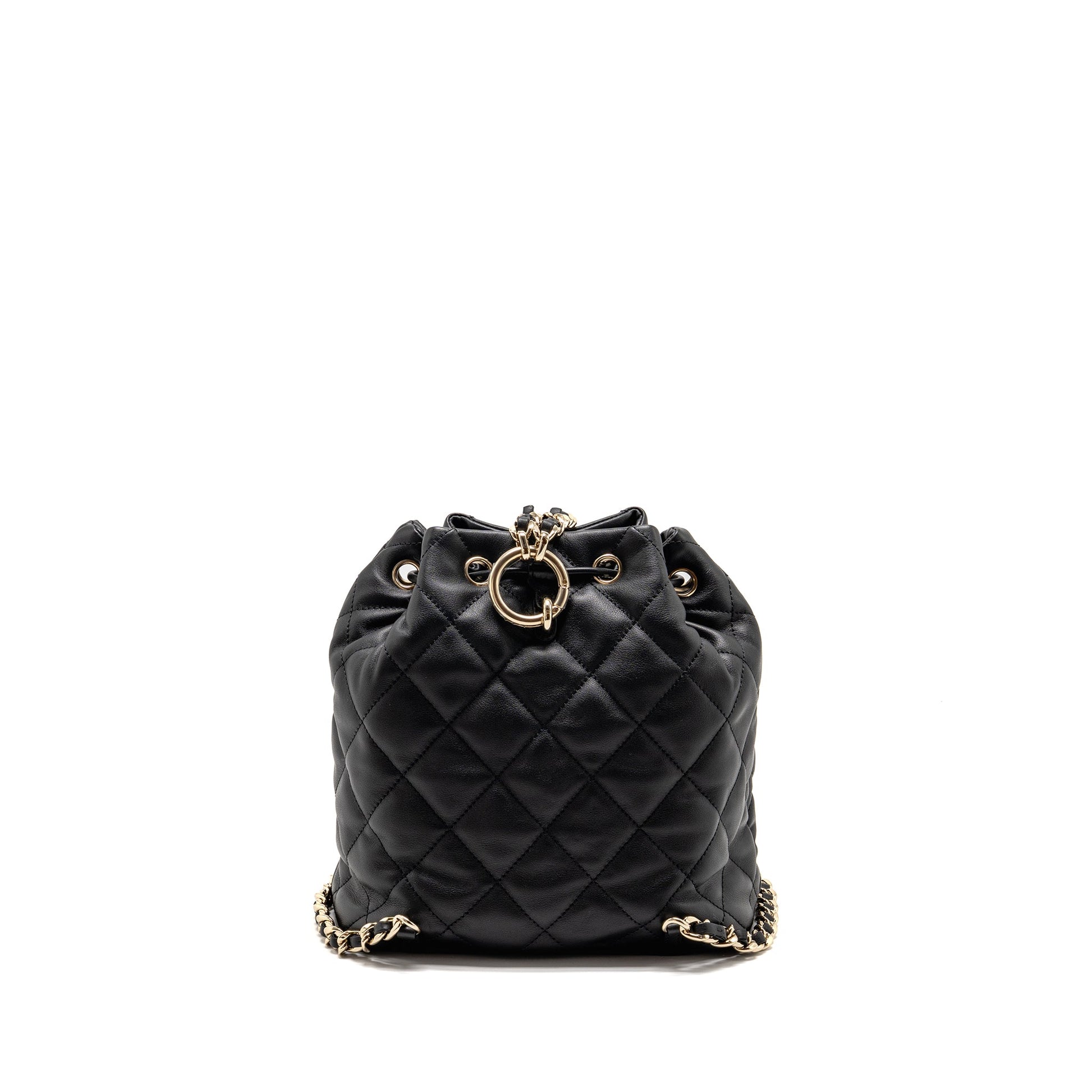 Chanel Drawstring Two Pockets Backpack Calfskin Black