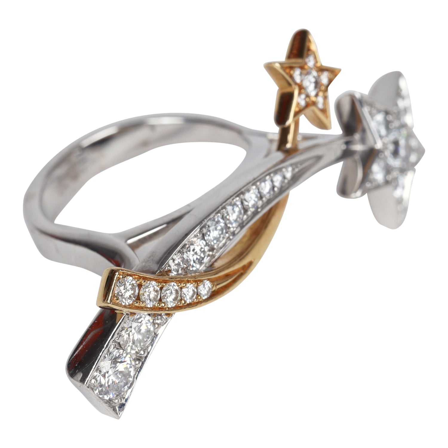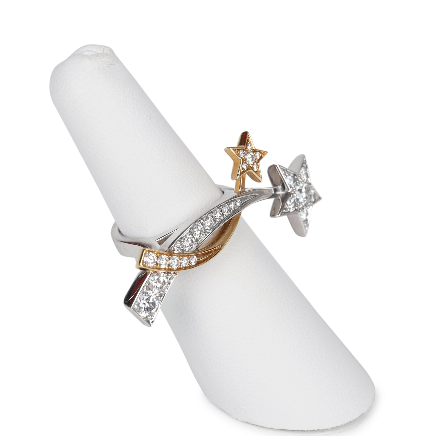 This Chanel Etoile Filante ring is made of two shooting stars of 18k white and yellow tone gold and 0.79 carat diamonds.