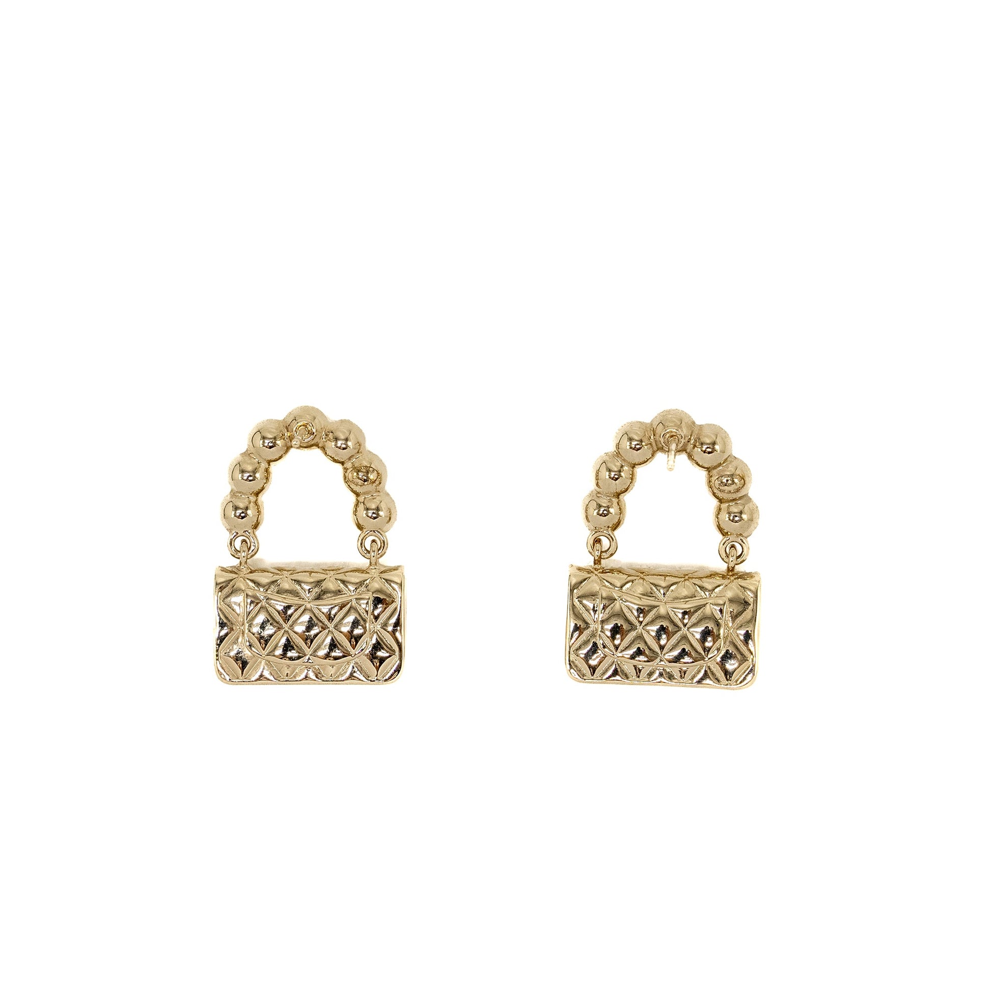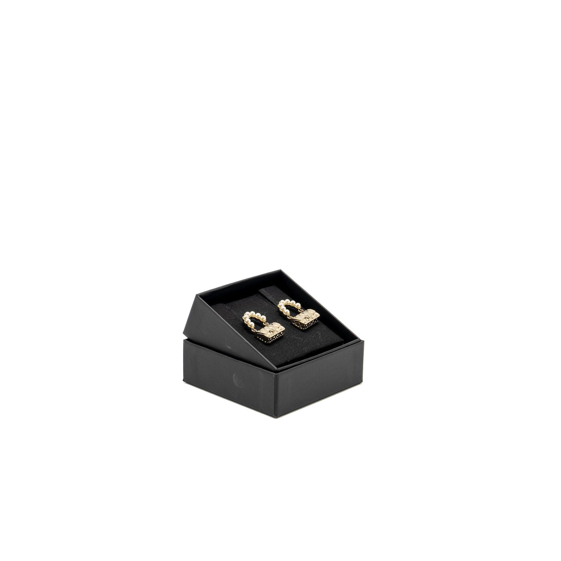 Chanel Flap Bag Dropped Earrings With Pearl Light Gold Tone
