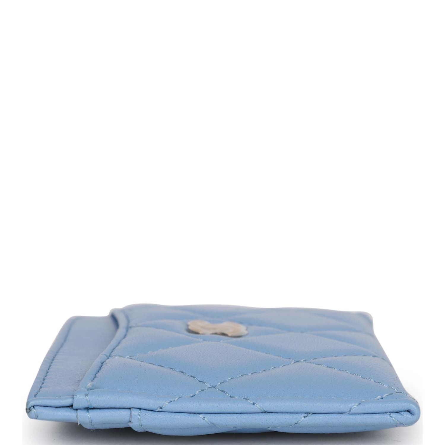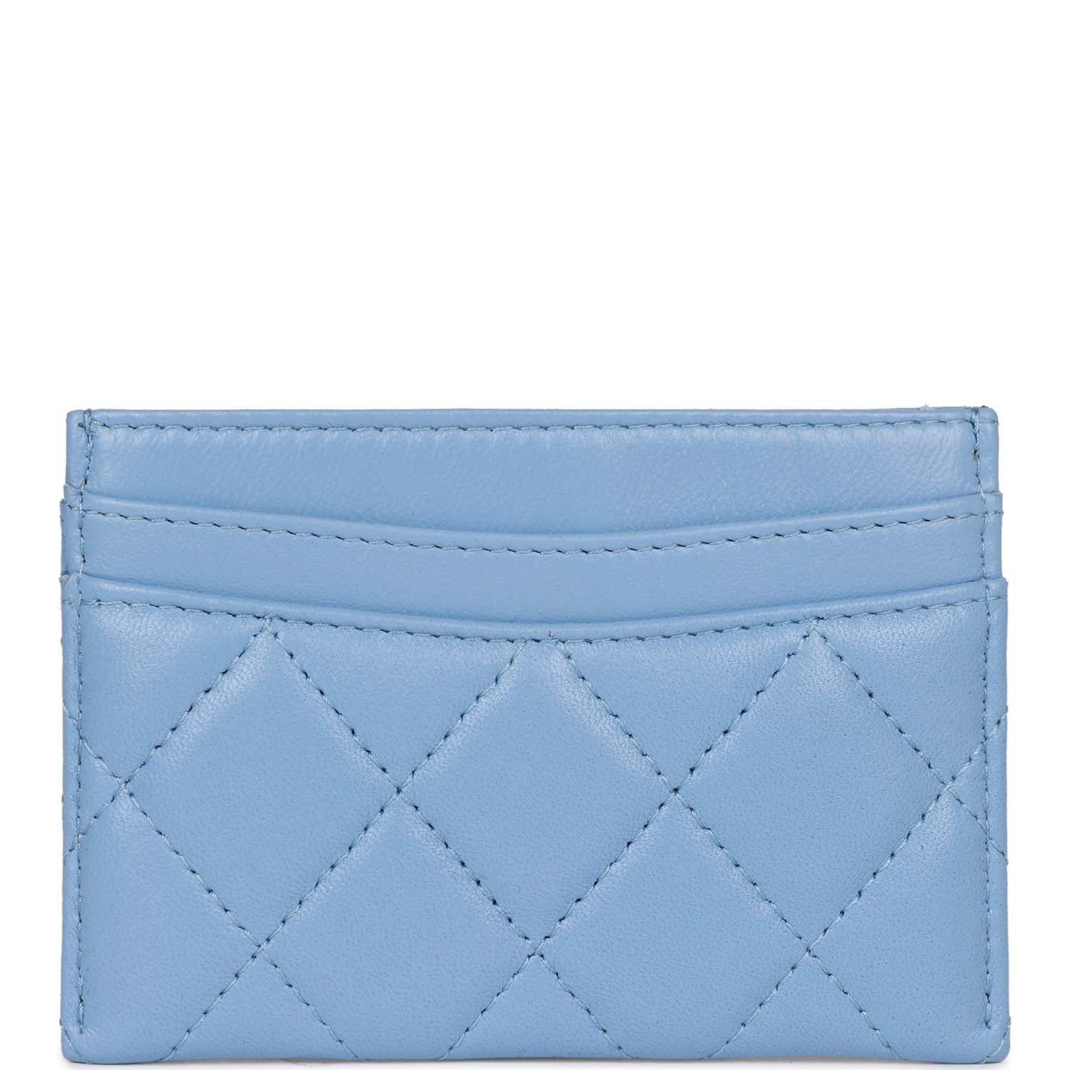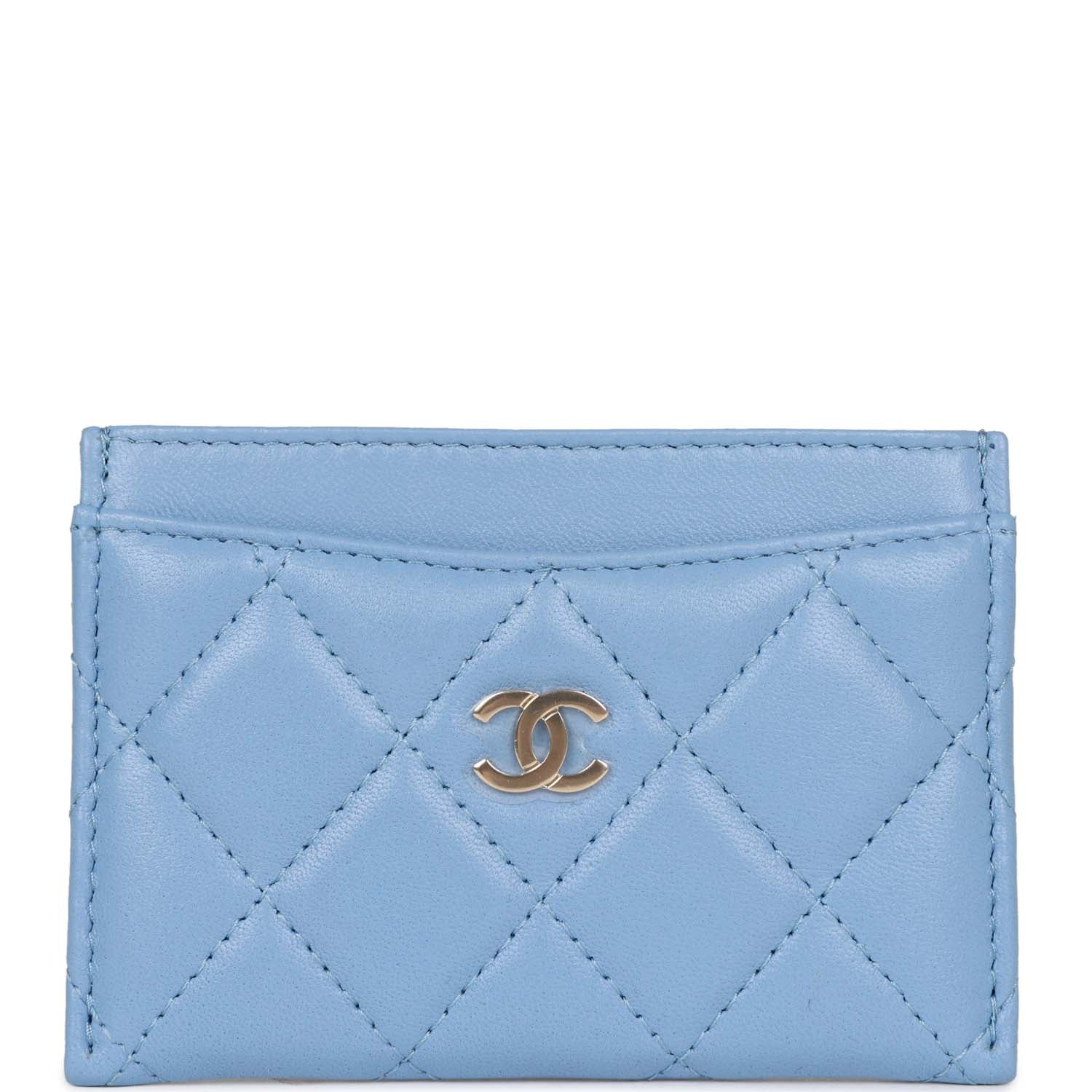 This cardholder is in Blue quilted lambskin with light gold hardware featuring a classic CC logo.