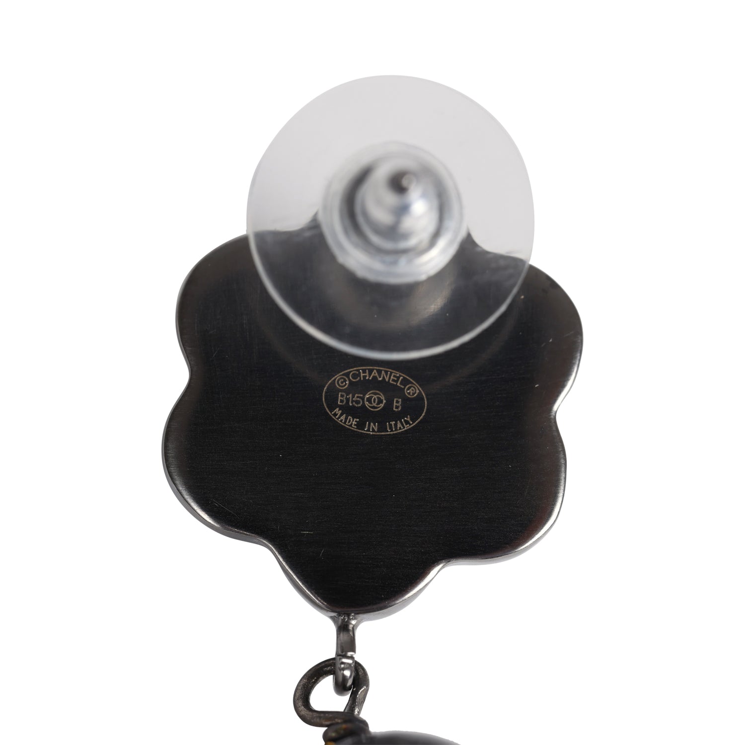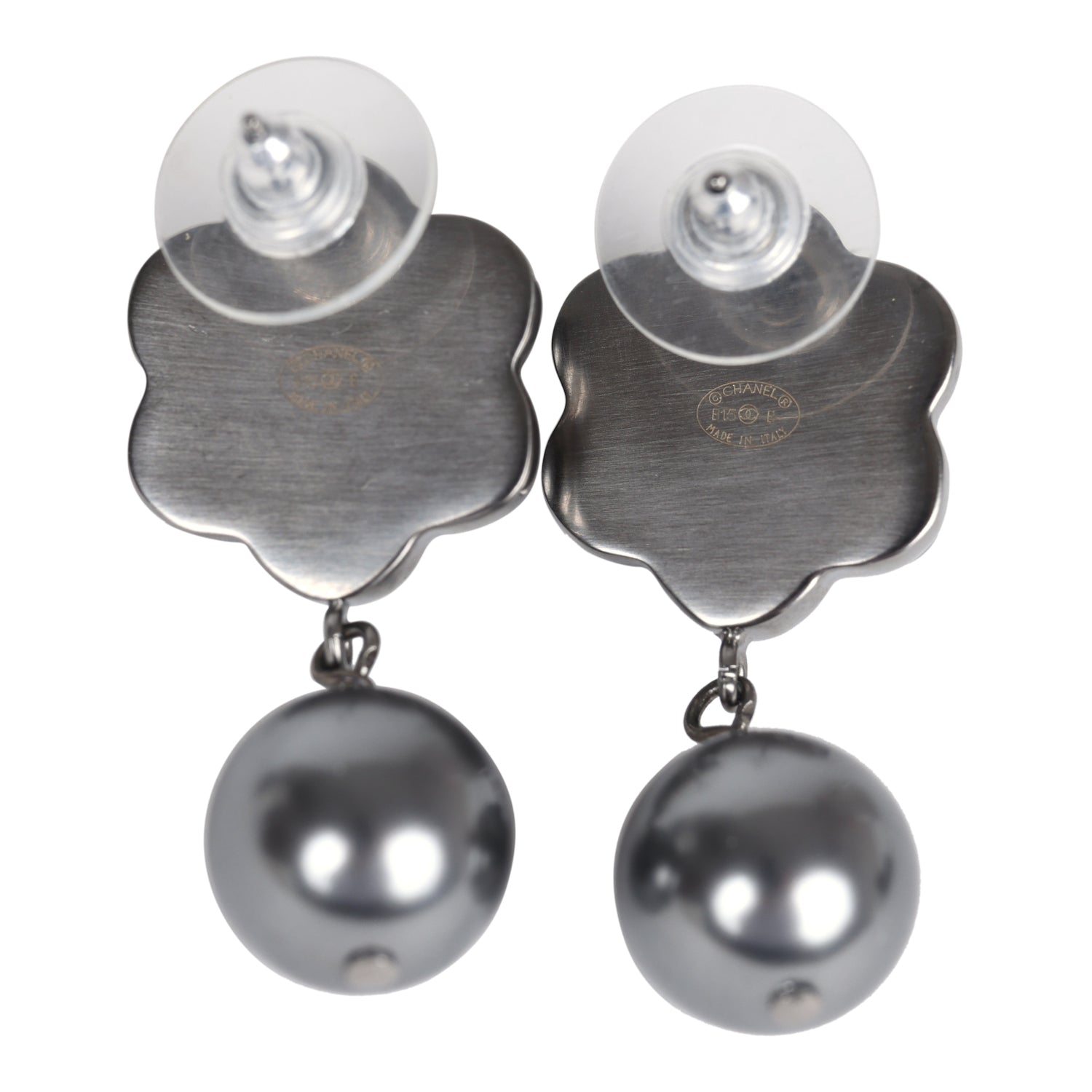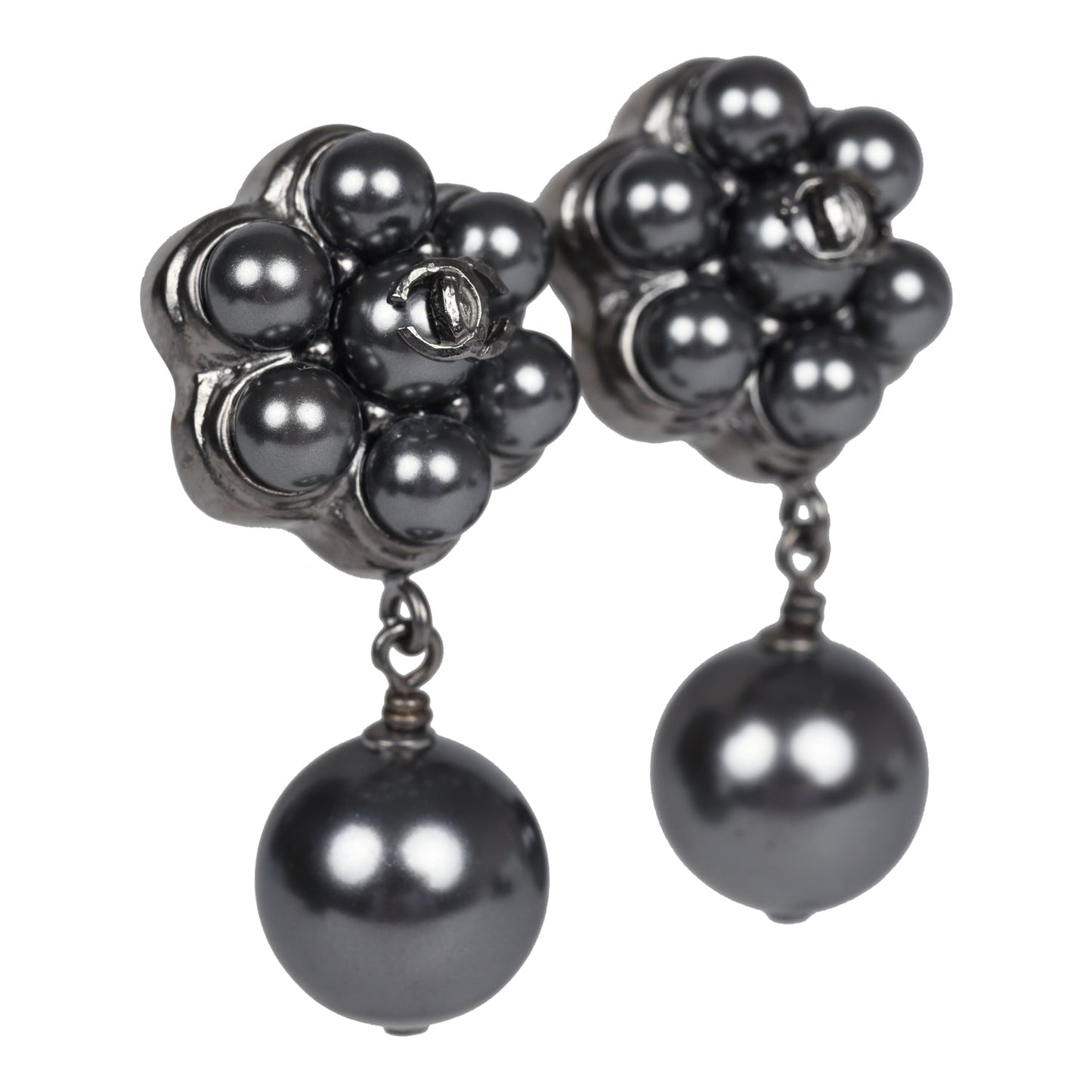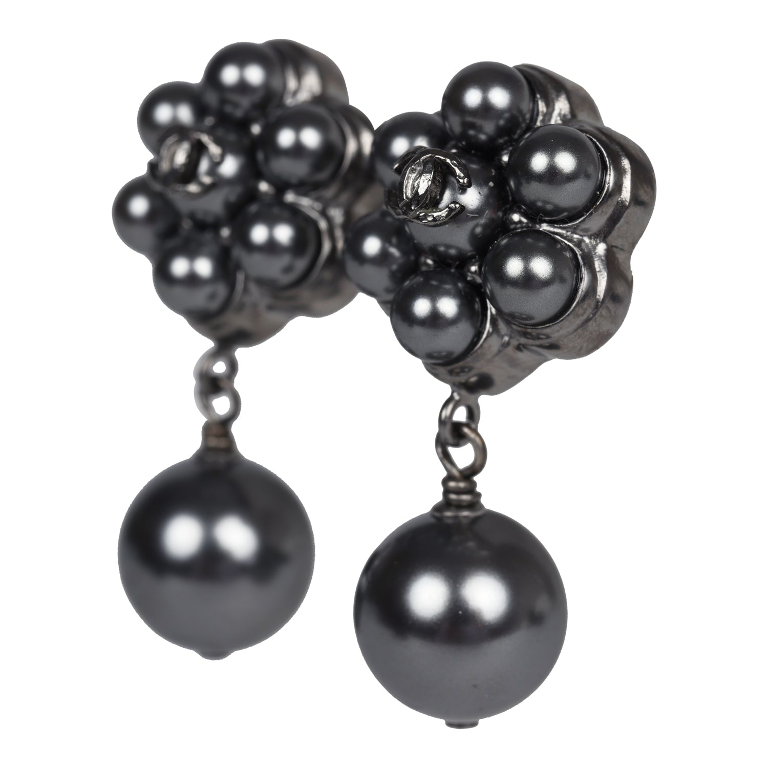 Chanel Flower Pearl Cluster Dangle Earrings Dark Grey Ruthenium Hardware