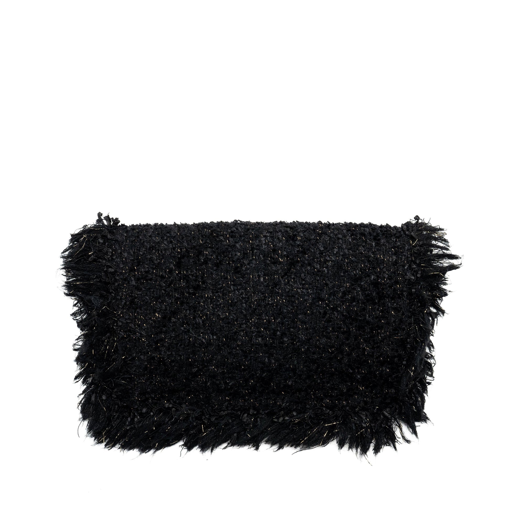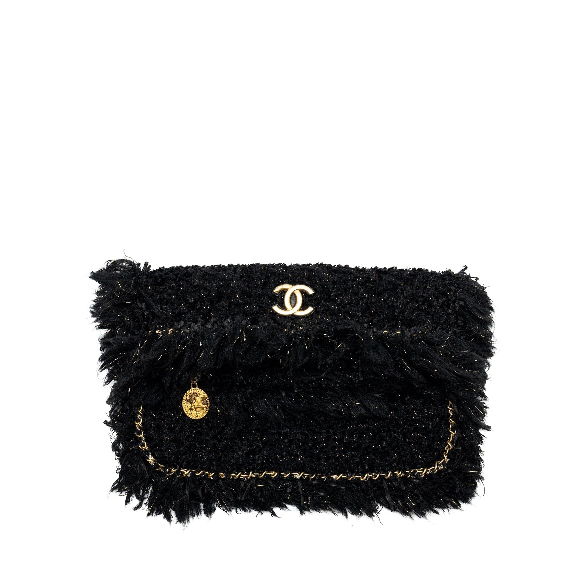 Chanel Fringe Paris Cosmopolite Clutch Tweed Black