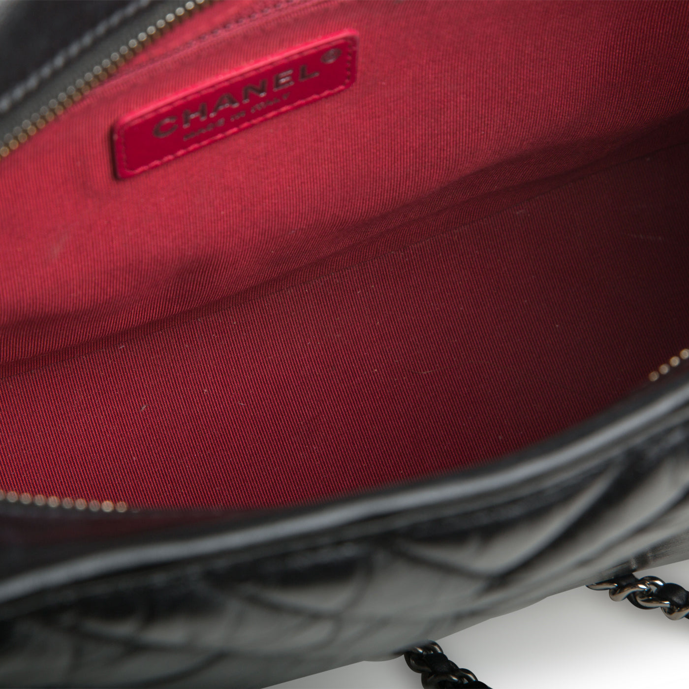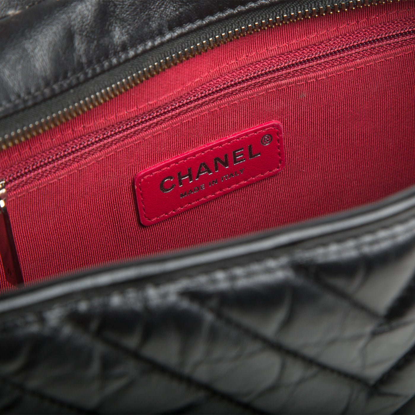 • Chanel embossed leather logo tag