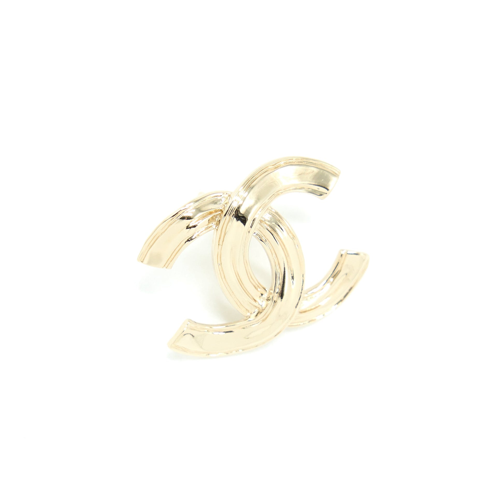 Chanel Giant CC Logo Earrings Light Gold Tone