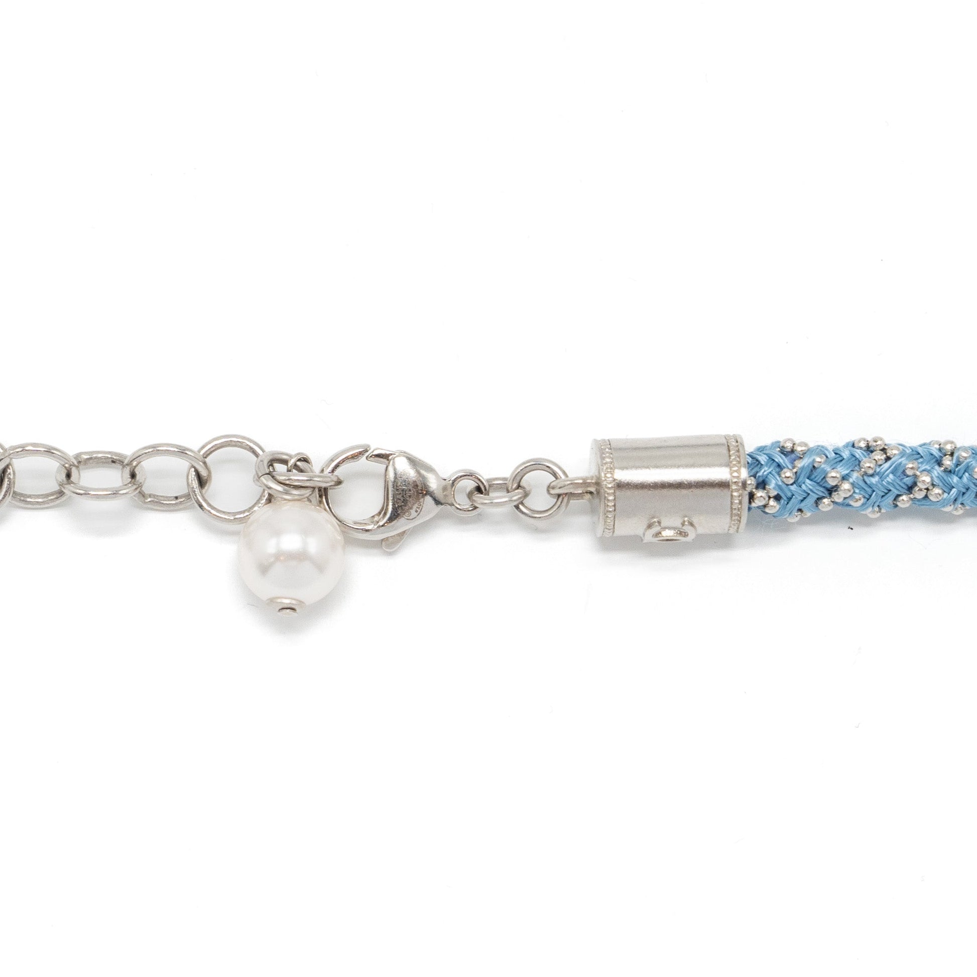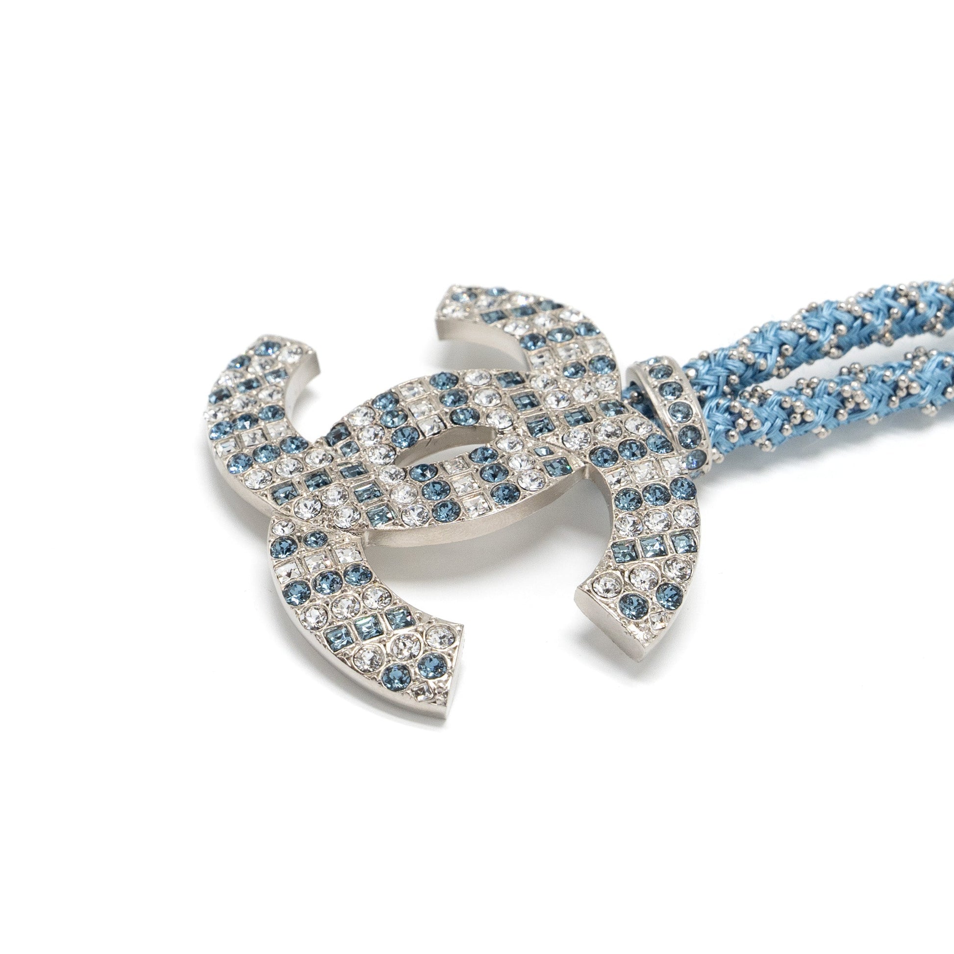 Chanel Giant CC logo necklace with crystal blue silver tone