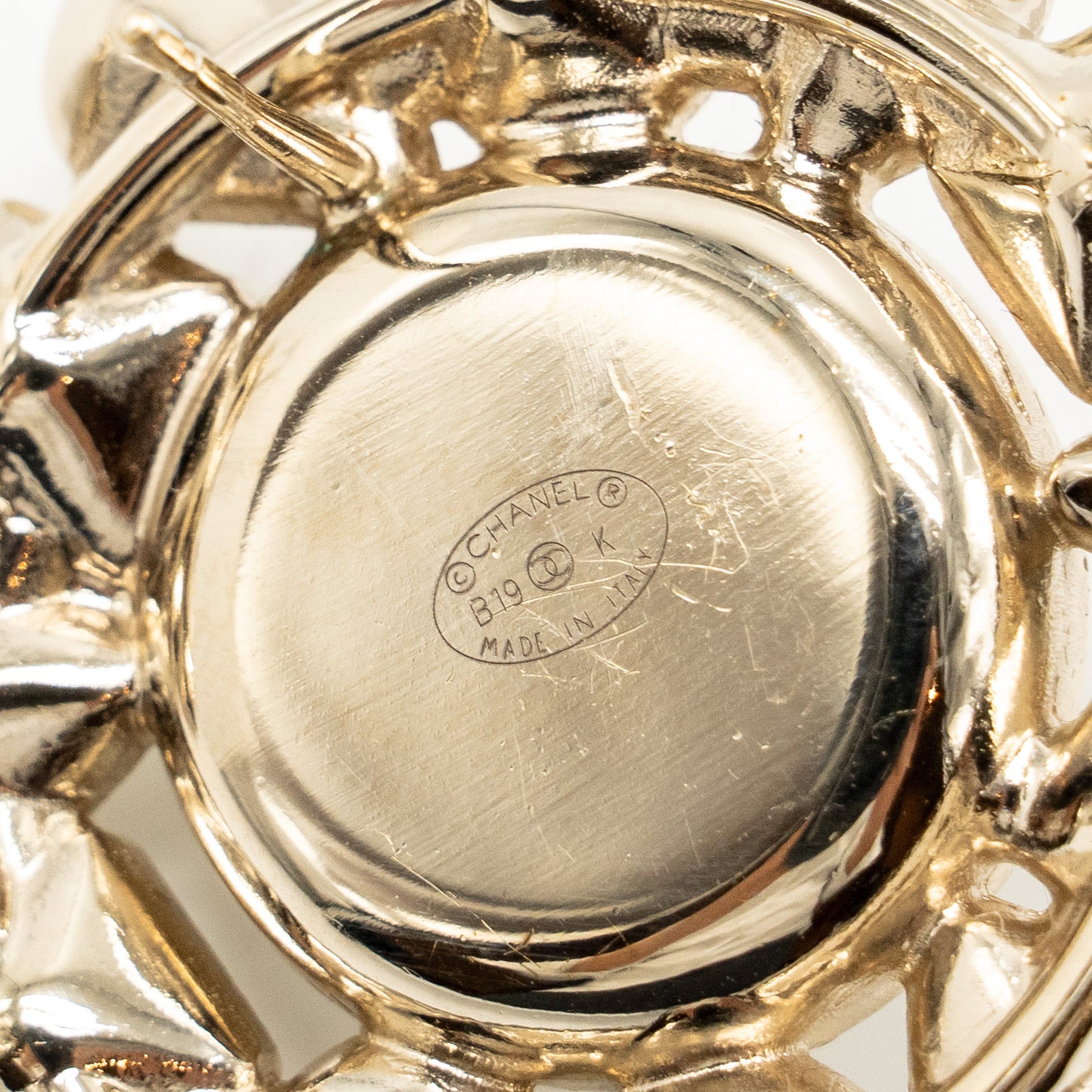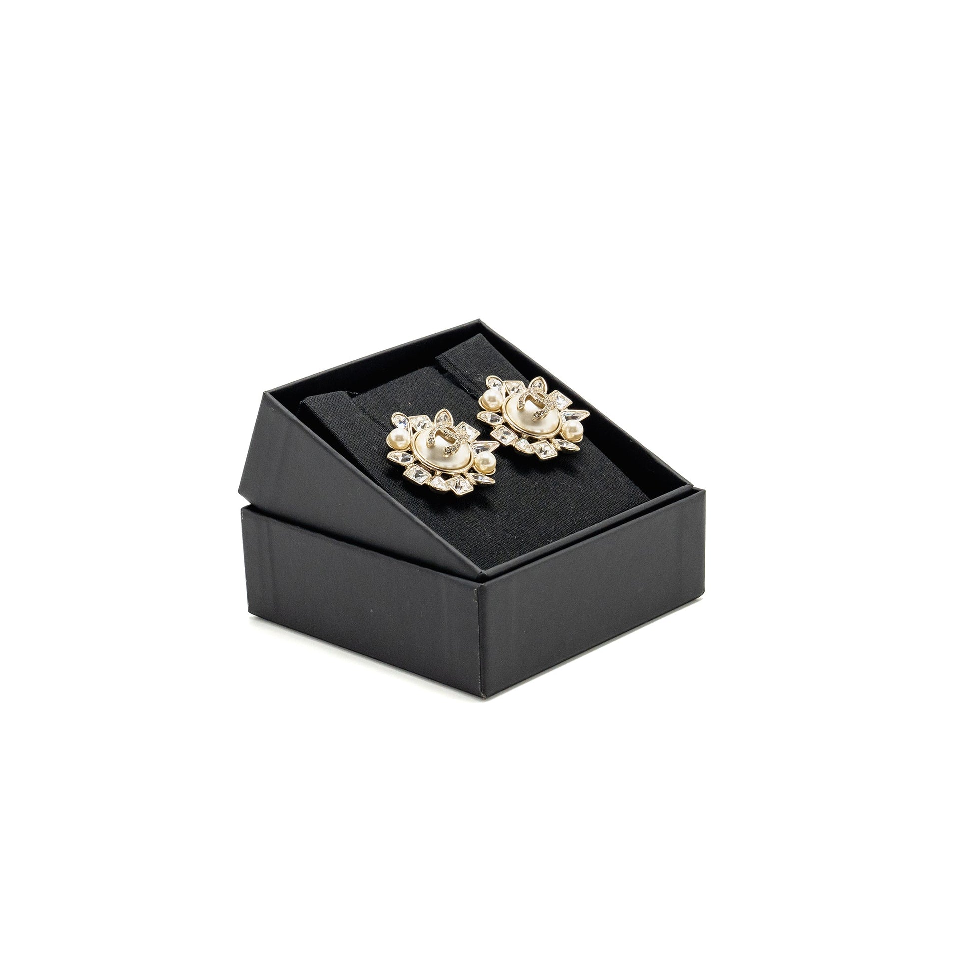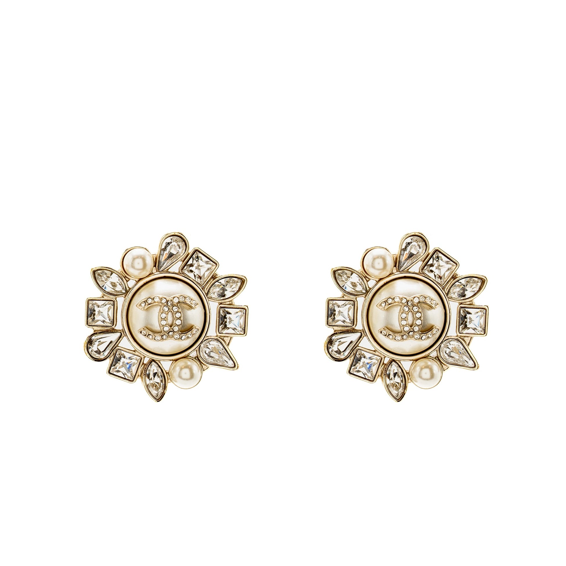 Chanel Giant Geometric CC Logo Earrings Pearl/Crystal Light Gold Tone