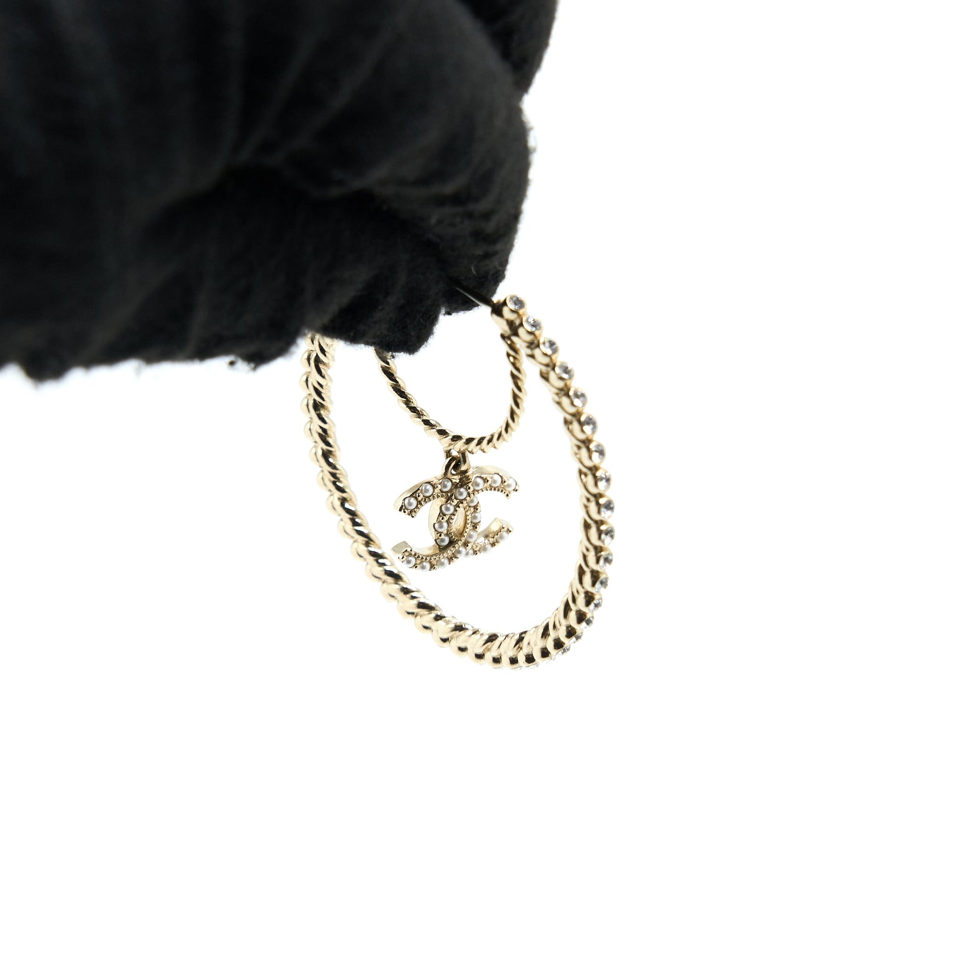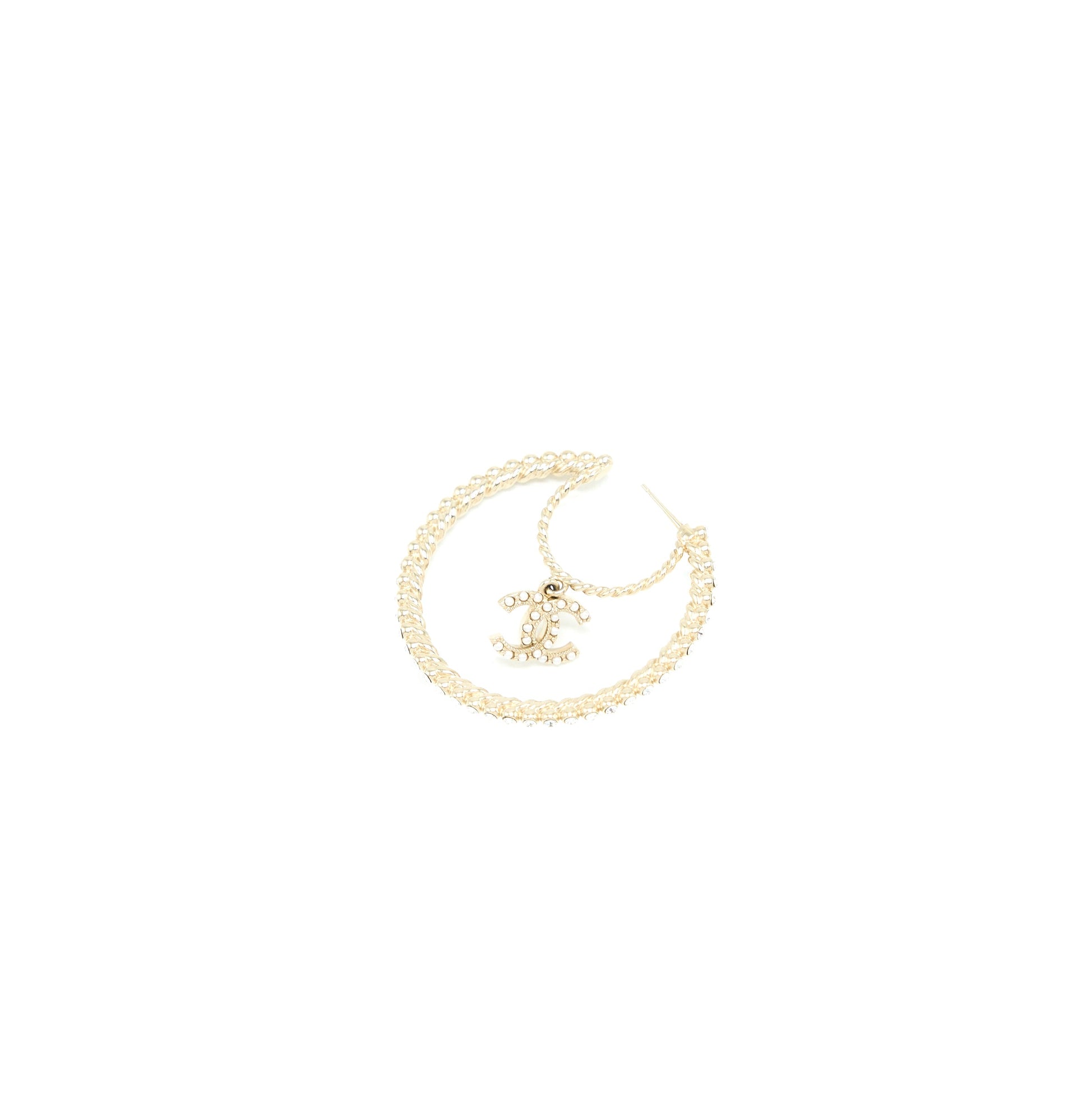 Chanel Giant Pearl Circle Earrings Pearl/Crystal Light Gold Tone