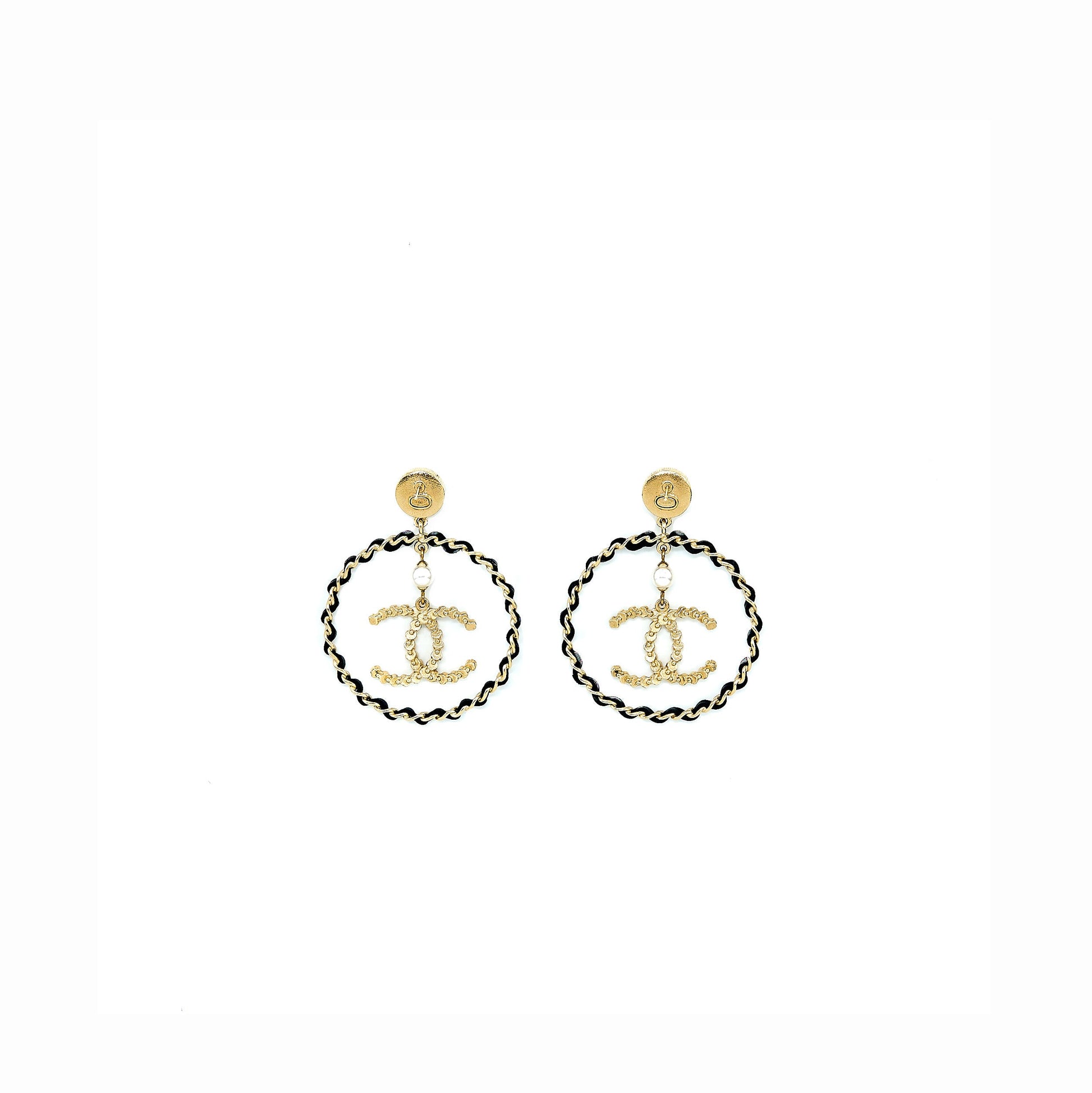 Chanel Giant Round CC Earring Black/Gold Tone