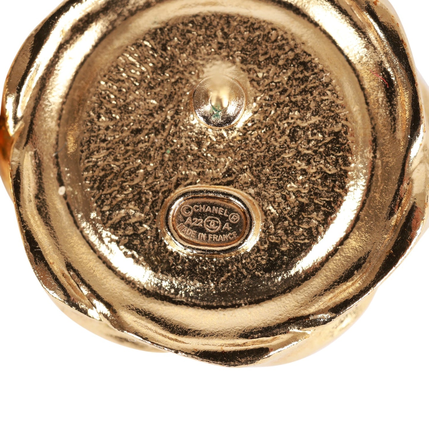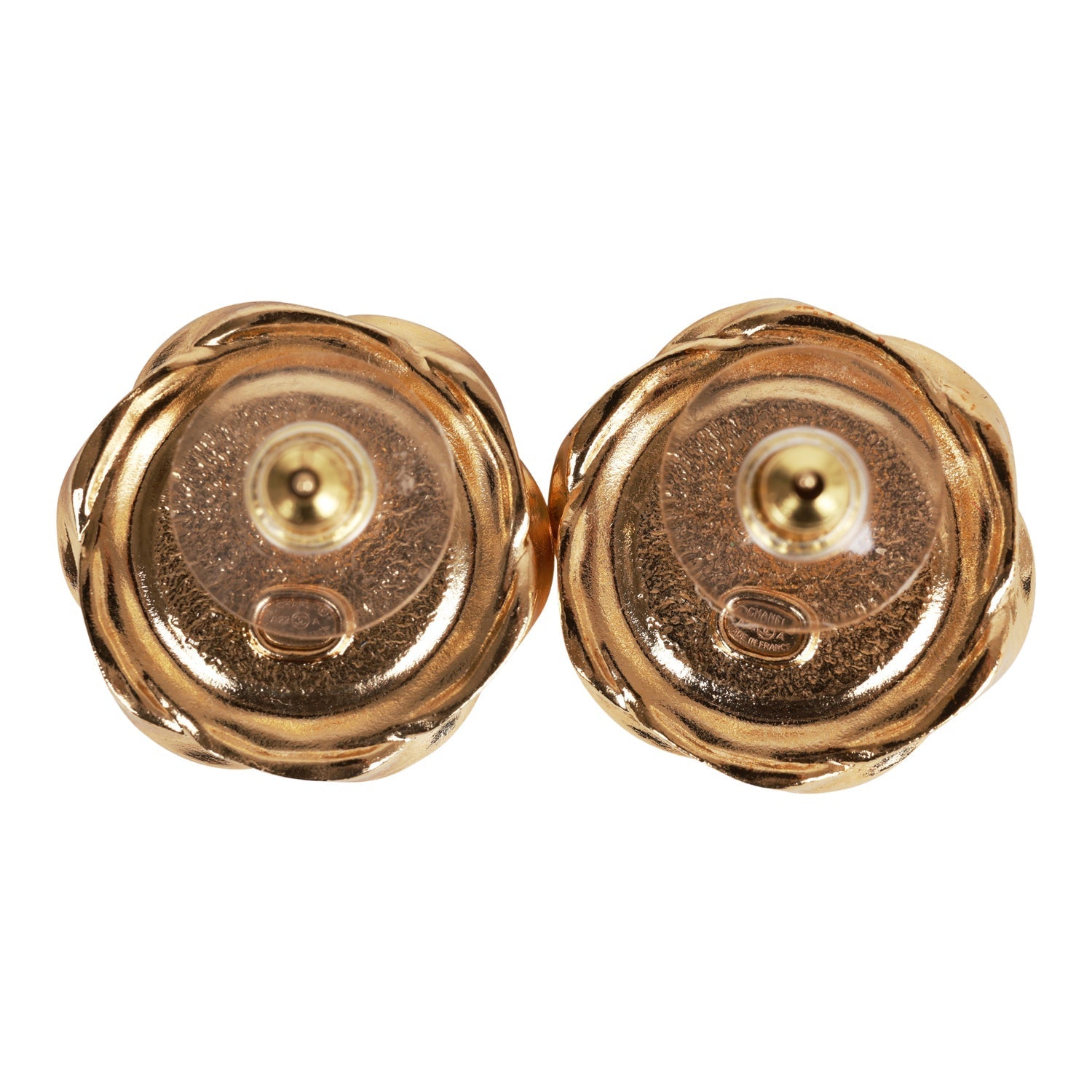 These 22A Chanel stud earrings are in the signature CC logo with a sunburst design, and are gold tone with a black enamel contrast background.