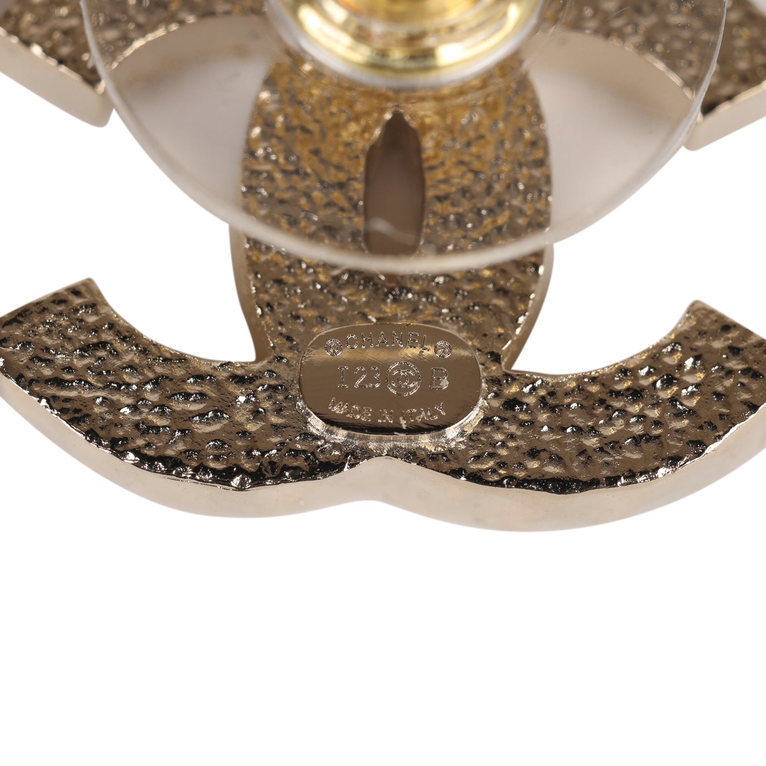 These 23B CC logo earrings are in gold tone metal with clear crystals and faux pearls.
