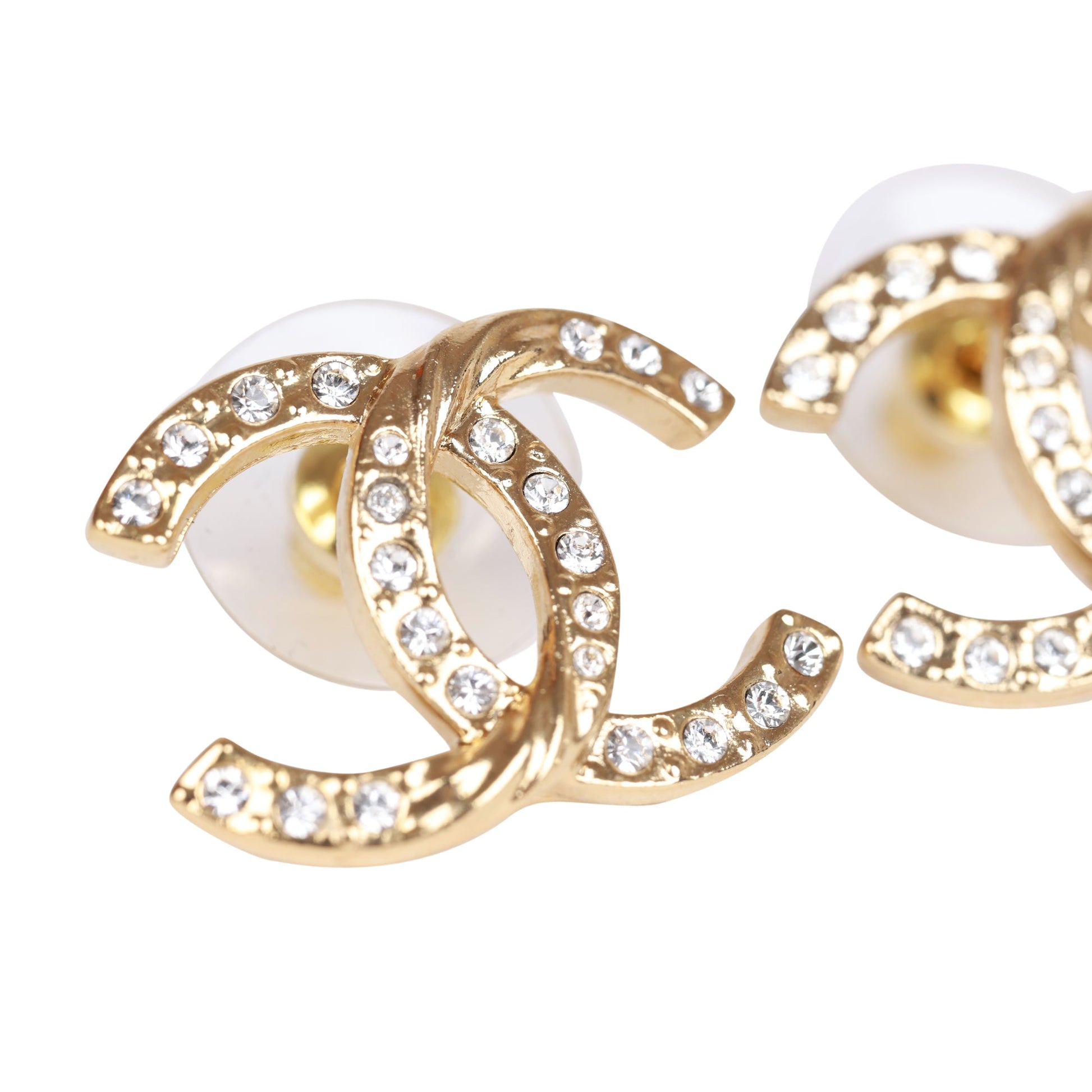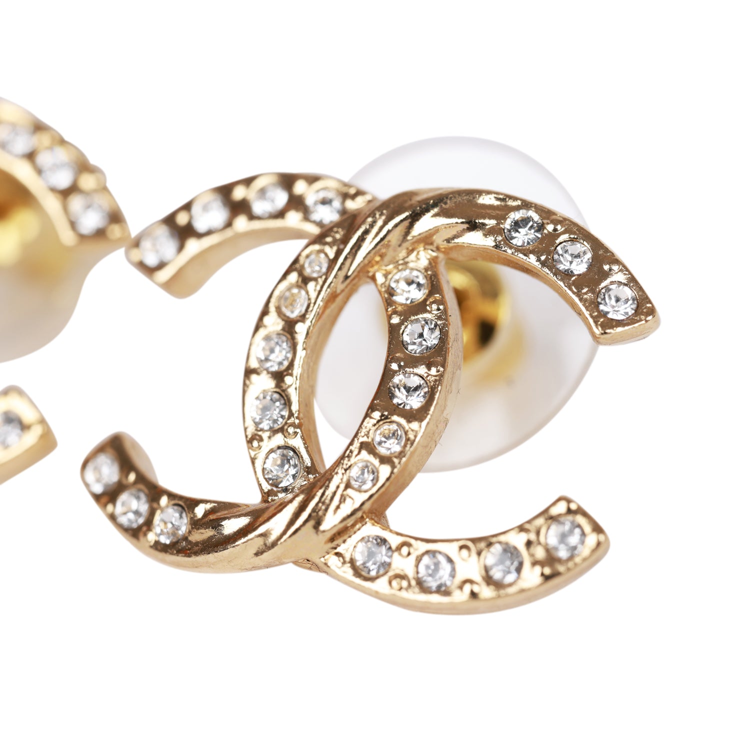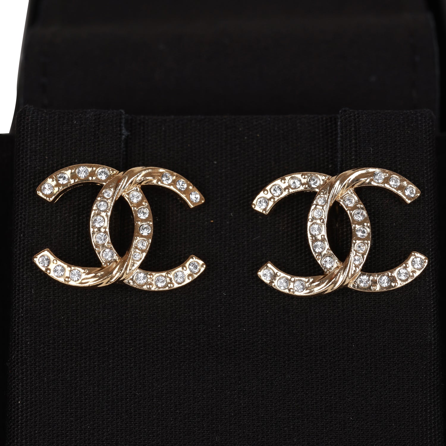 Chanel Gold Crystal Twist Boucle CC Earrings