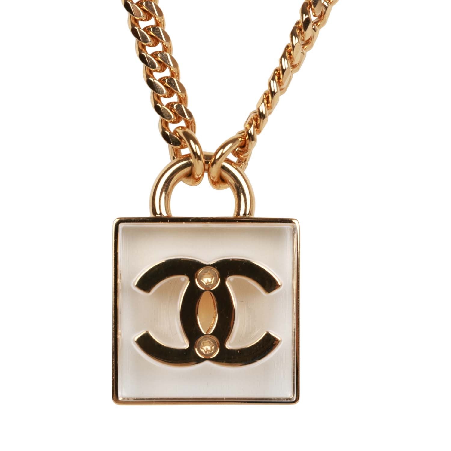Chanel Gold Tone and Resin CC Square Pendant Necklace
