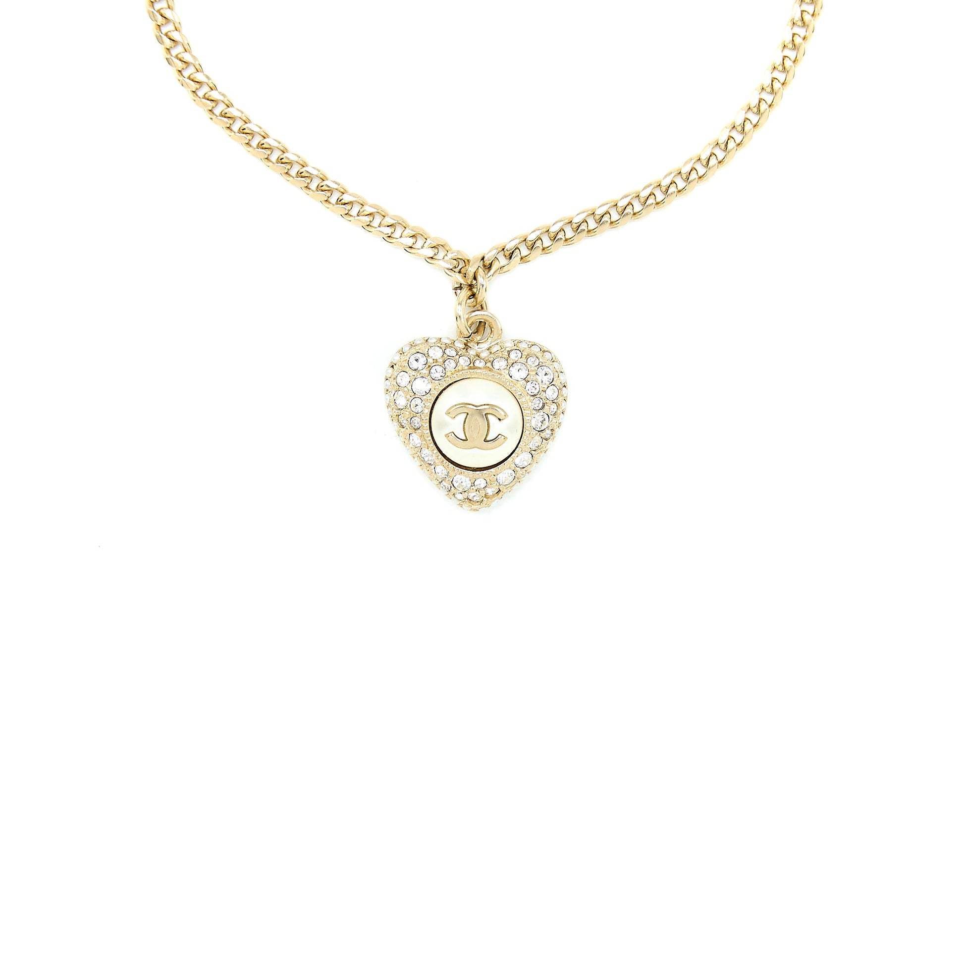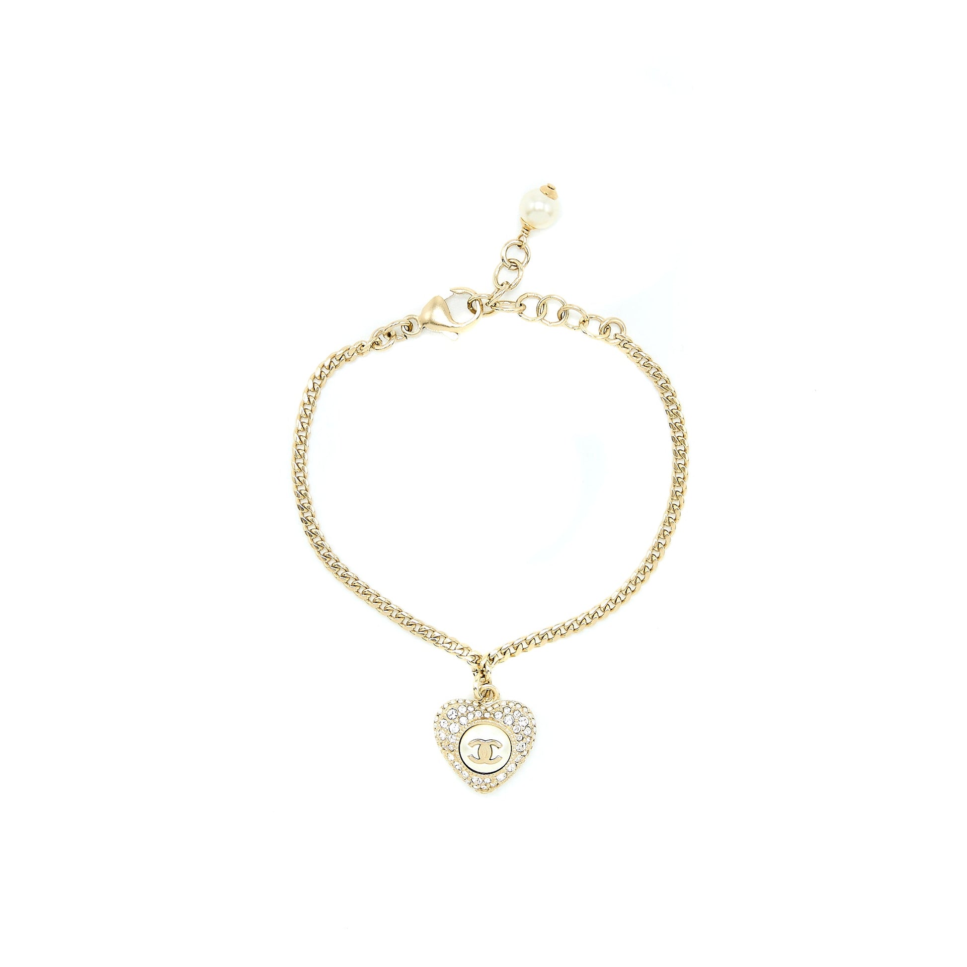 Chanel Heart Pearl Bracelet With CC logo Crystal Light Gold Tone