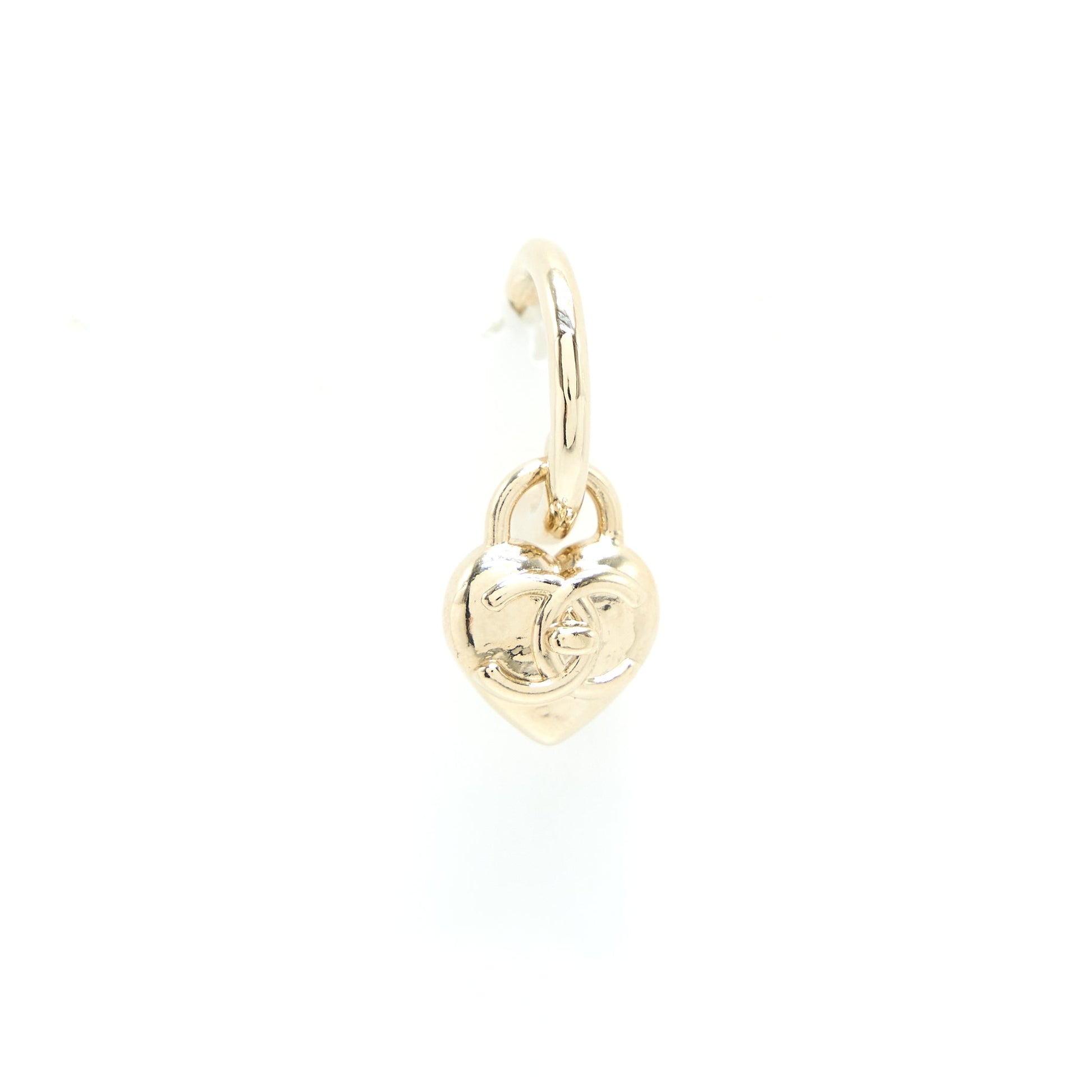 Chanel Heart CC Earrings Light Gold Tone