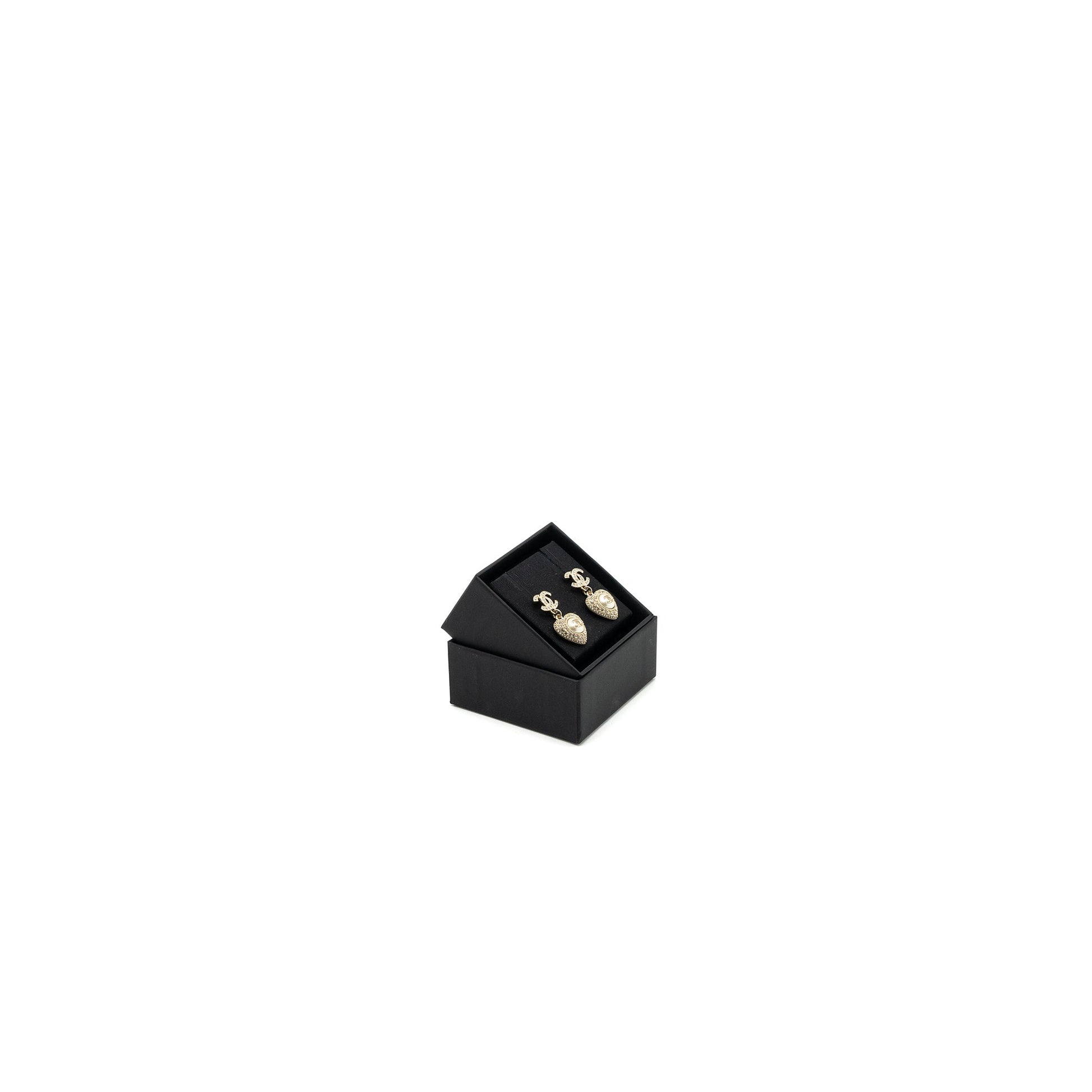 Chanel Heart Dropped CC Logo Earring Crystal Light Gold Tone