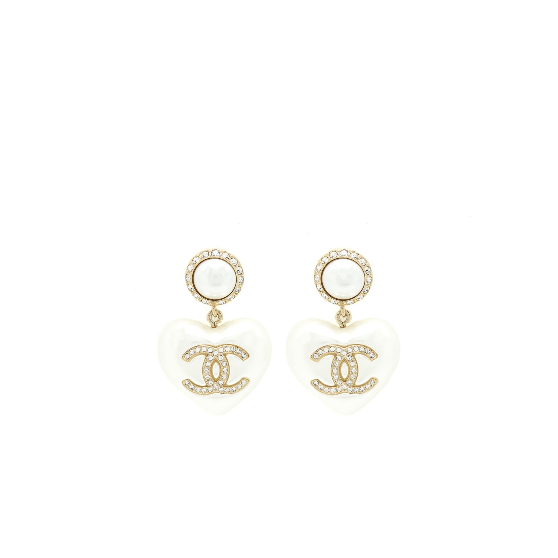 Chanel Heart Pearl Crystals CC Logo Earrings L