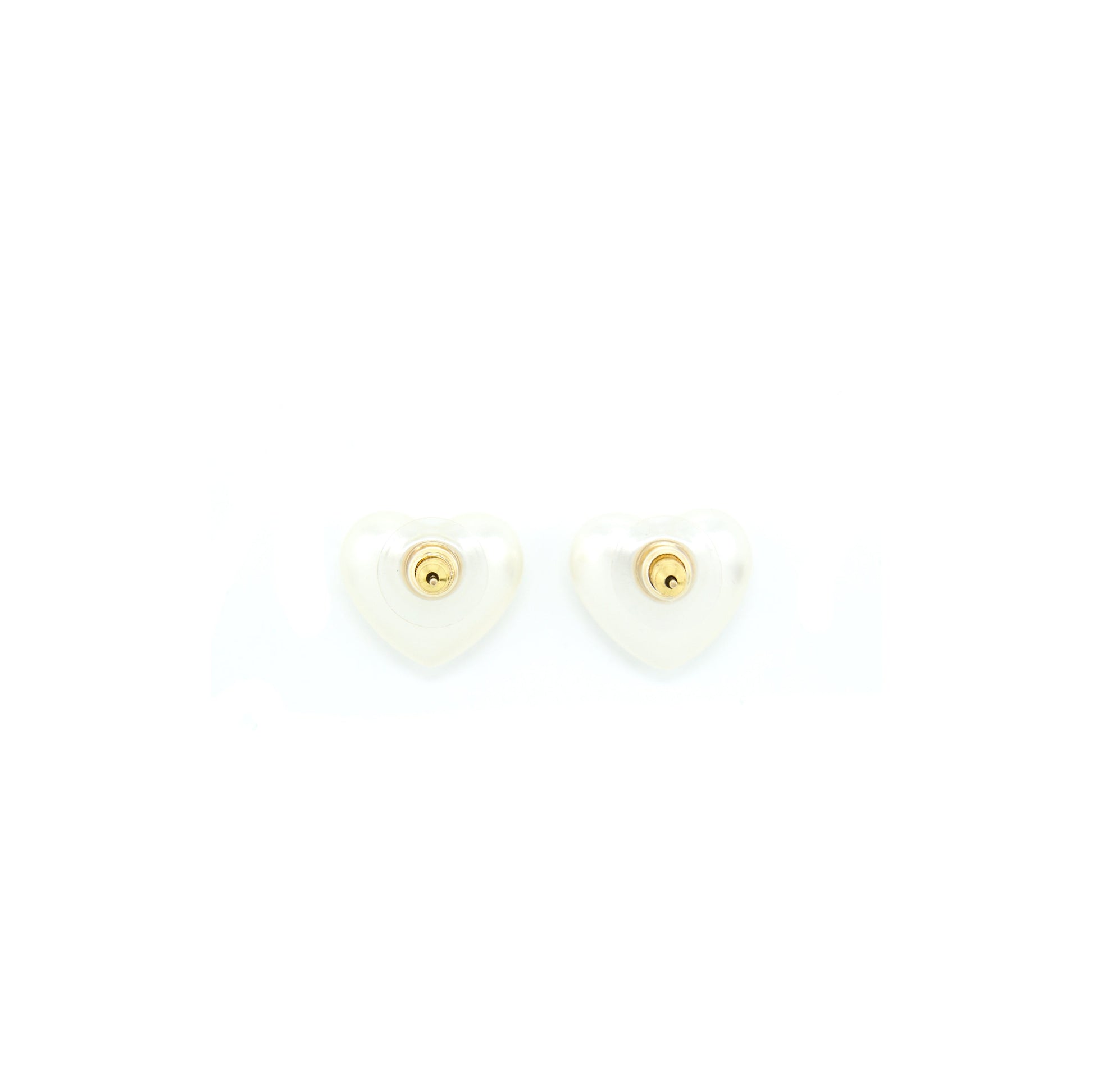 Chanel Heart Pearl Earrings With Crystals Light Gold