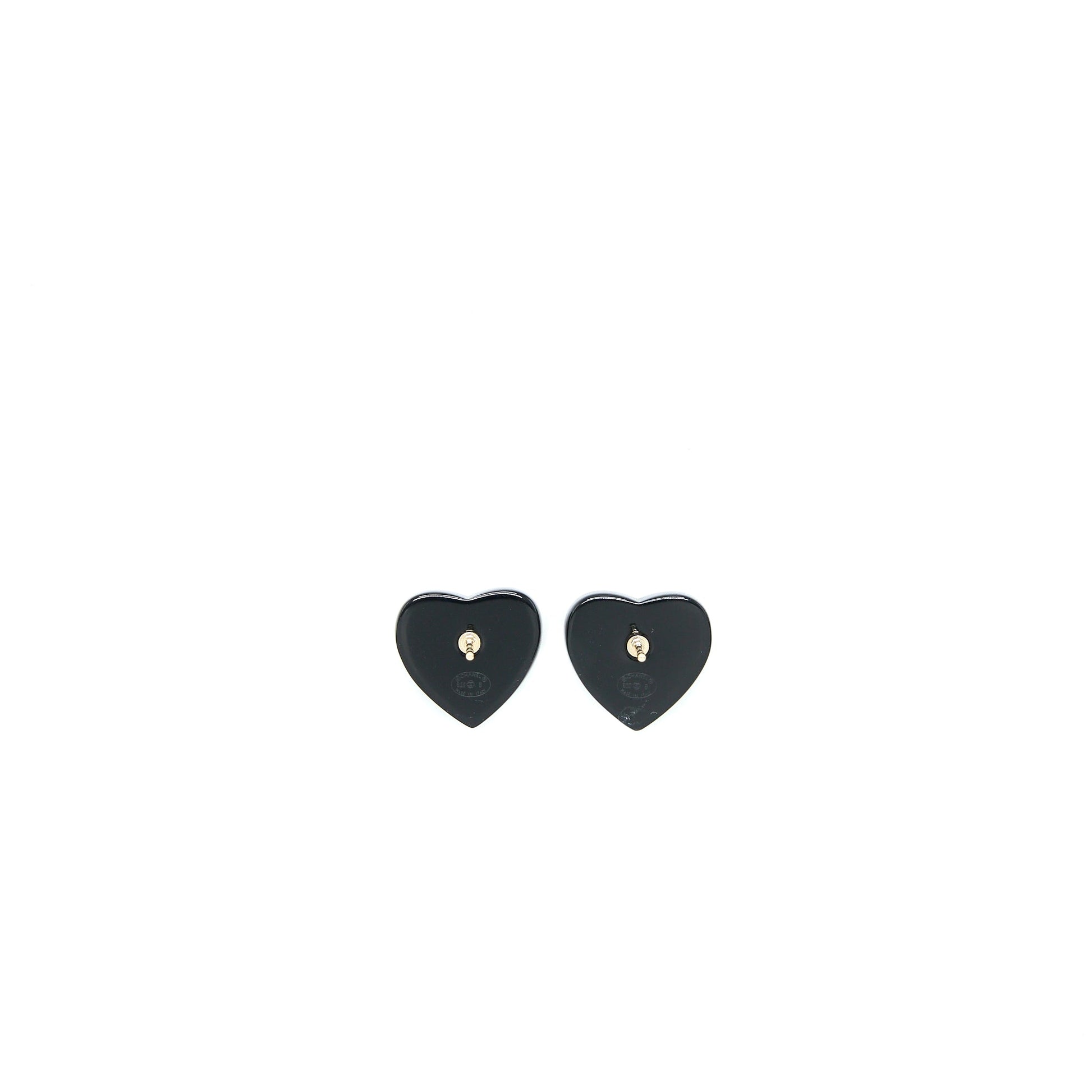 Chanel Heart Shape CC Logo Earrings Crystal Black Light Gold Tone
