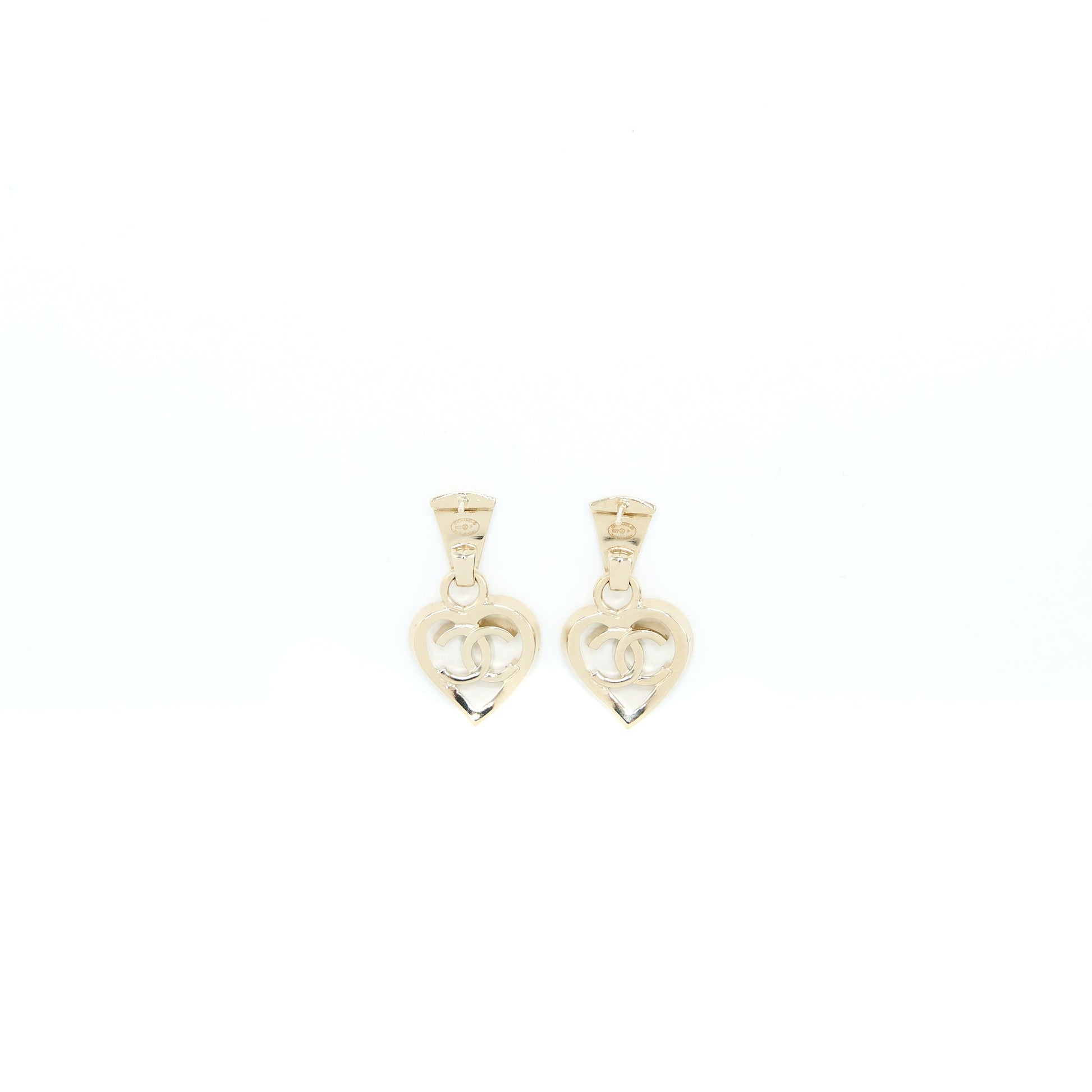 Chanel Heart Shape Dropped Earring Light Gold Tone