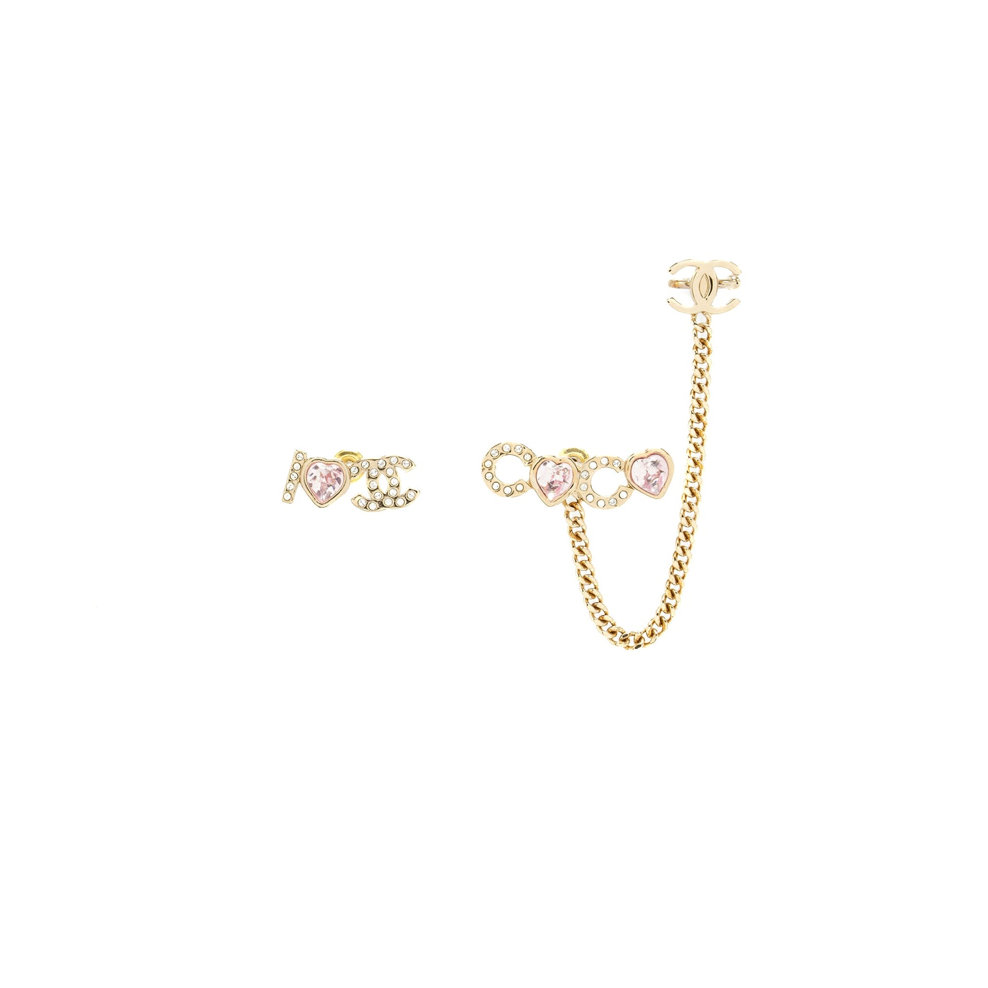 Chanel I Love Coco Heart Chain Climber Earrings Crystal/Light Gold Tone