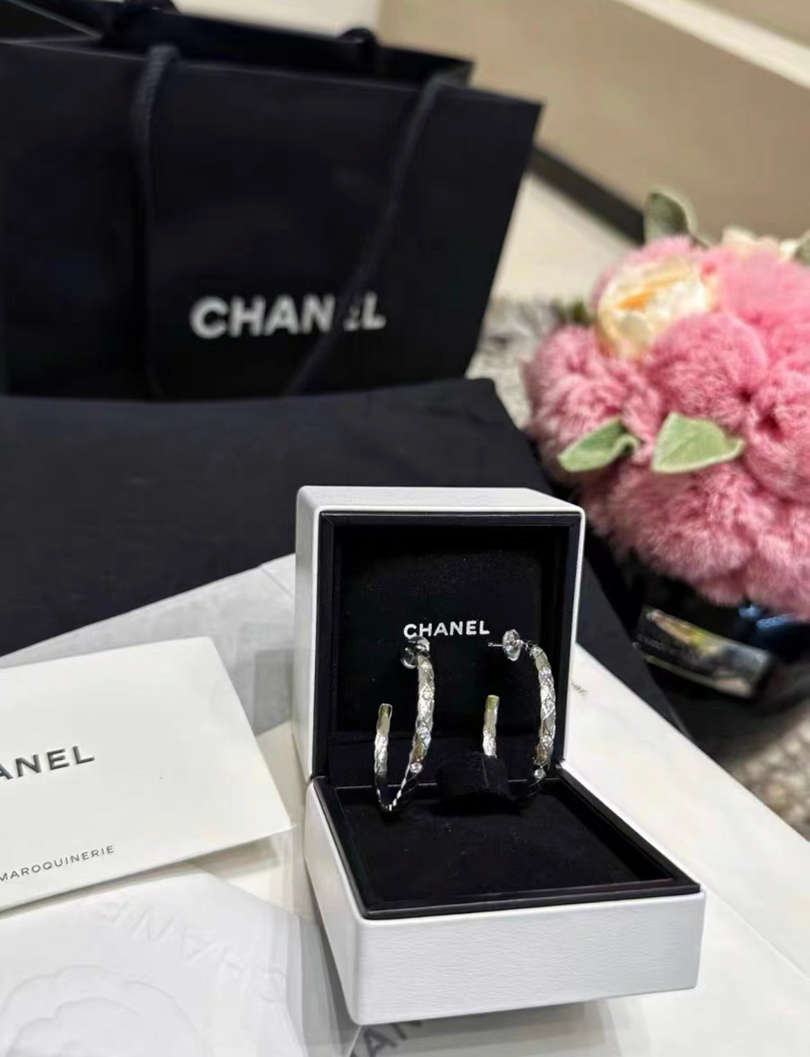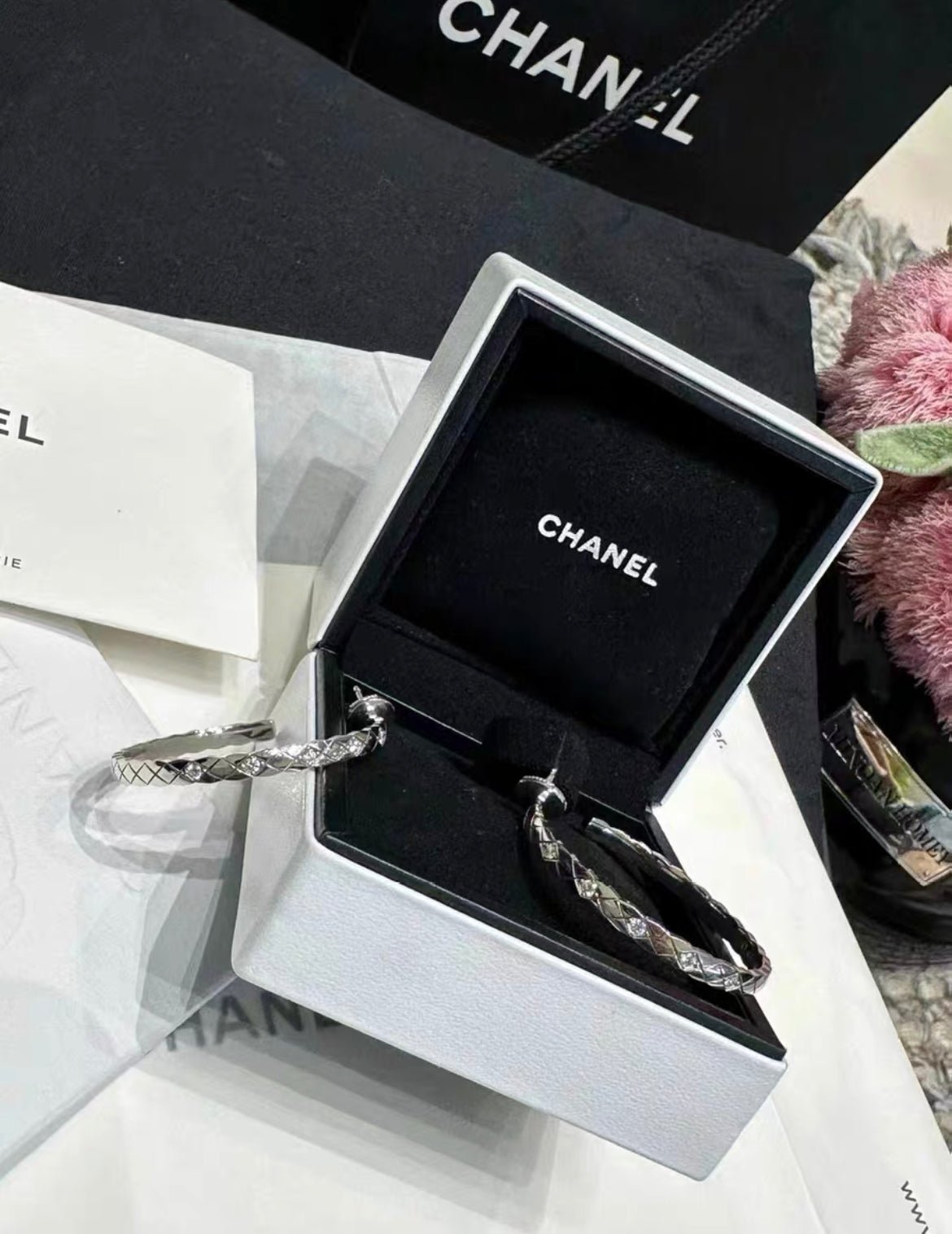 CHANEL JEWELRY 18k White Gold 0.20cttw Diamond Coco Crush 35mm Hoop Earrings