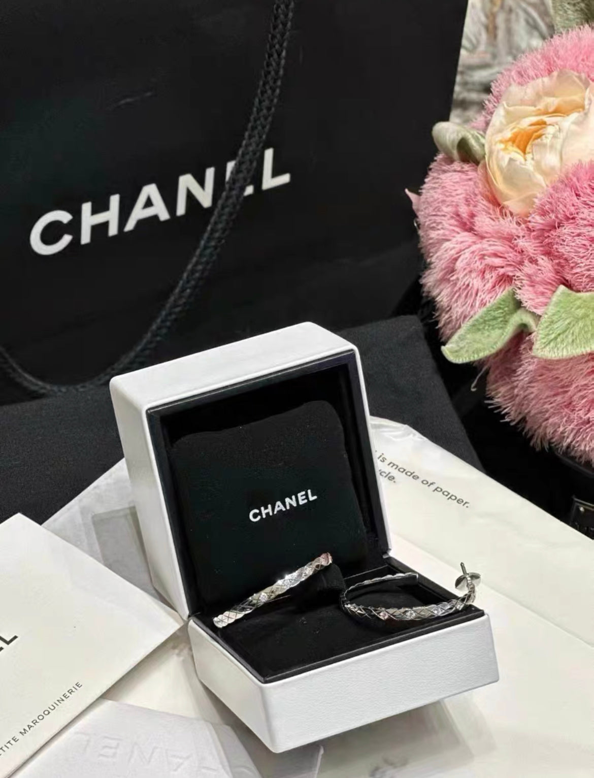 Indulge in luxury with these CHANEL Coco Crush 35mm hoop earrings crafted in 18k white gold and adorned with 0.20cttw brilliant-cut diamonds. The iconic quilted motif adds a touch of sophistication to any outfit. Elevate your style with this elegant and exclusive piece from the Coco Crush collection.