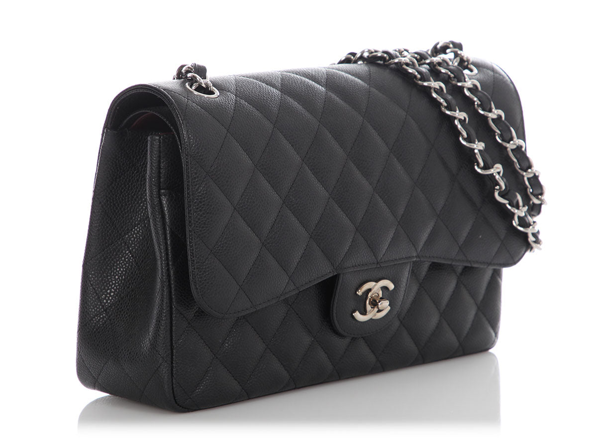 Chanel Jumbo Black Quilted Caviar Classic Double Flap