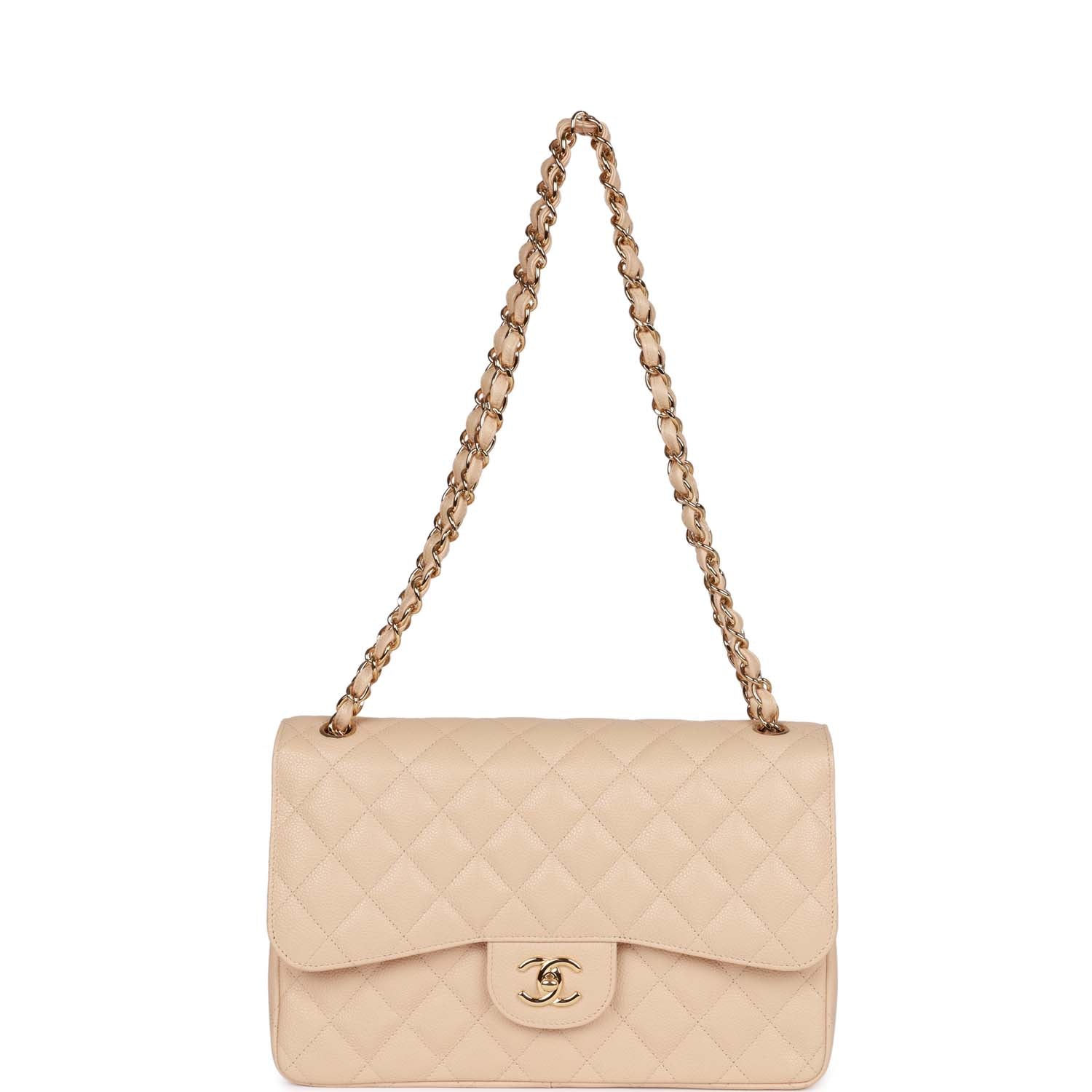 Chanel Jumbo Classic Double Flap Bag Beige Clair Caviar Gold Hardware