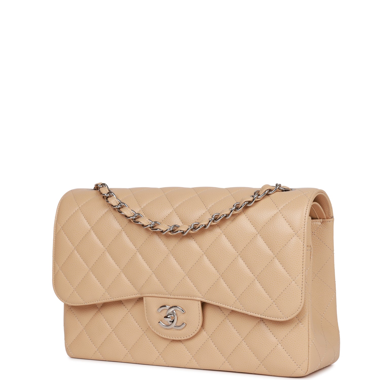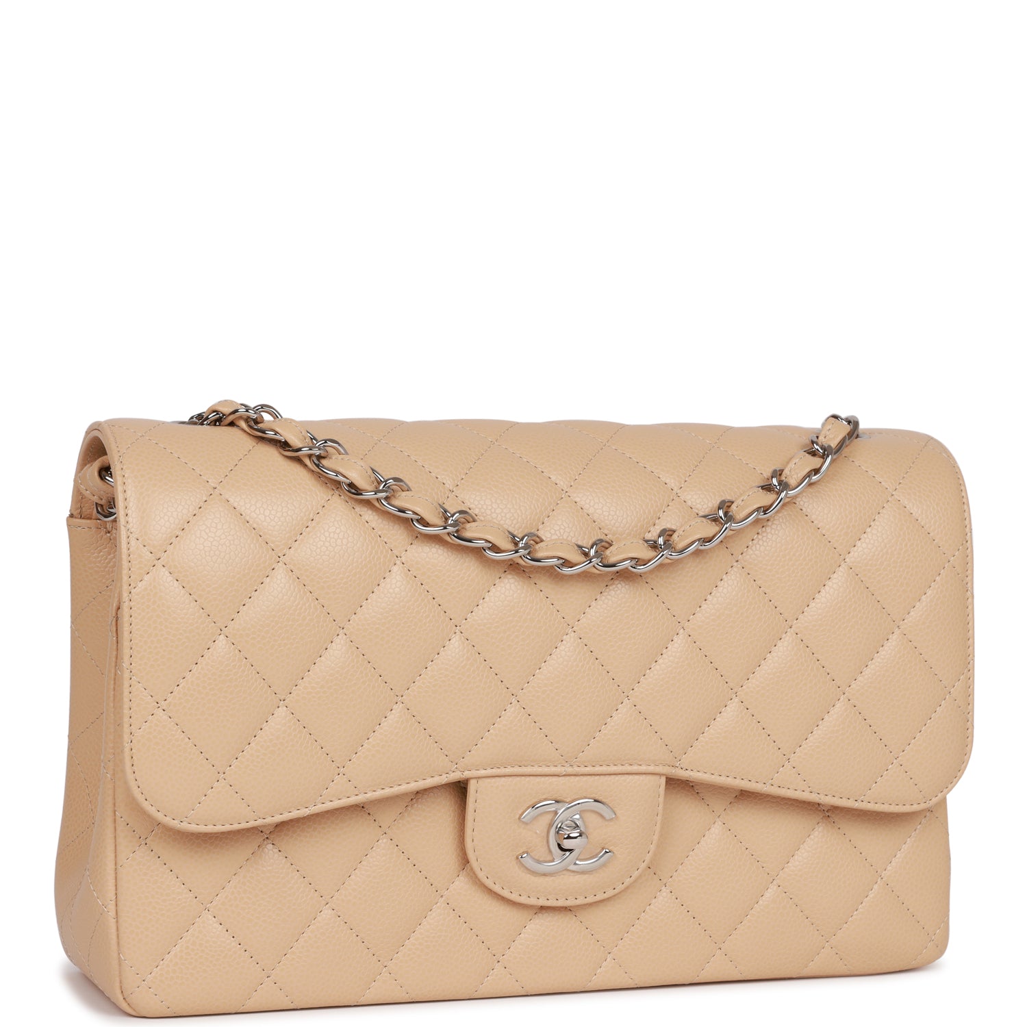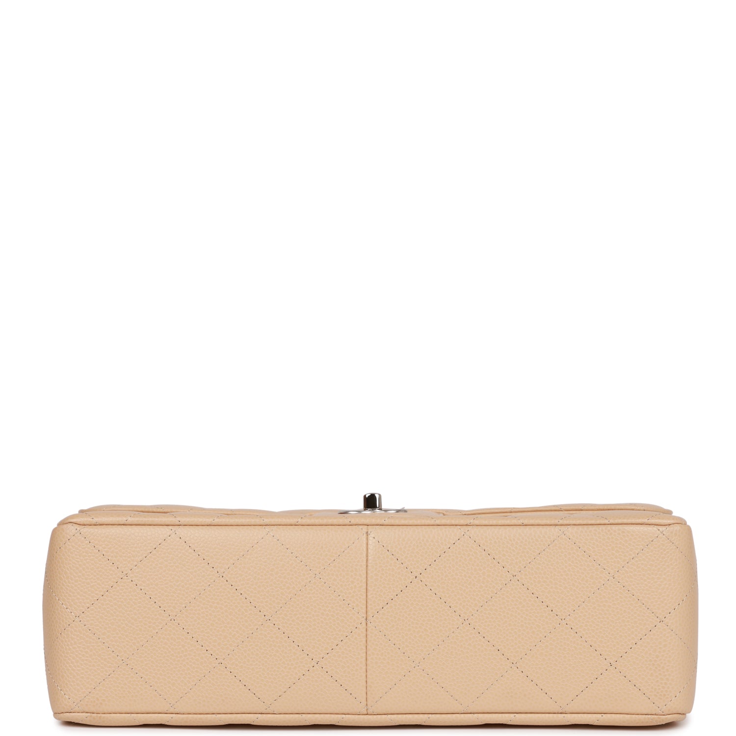Chanel Jumbo Classic Double Flap Bag Beige Caviar Silver Hardware