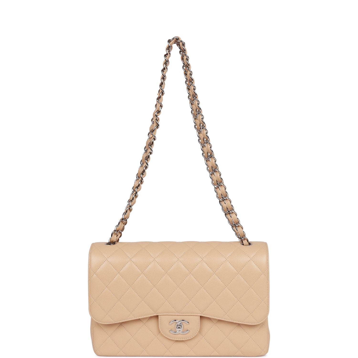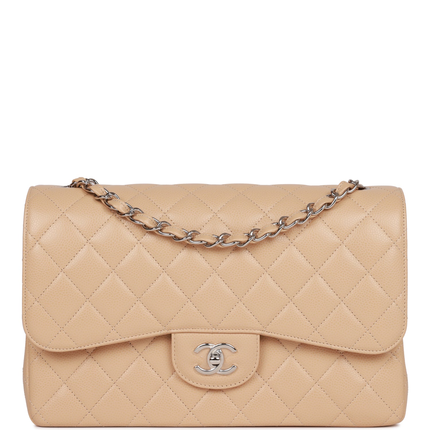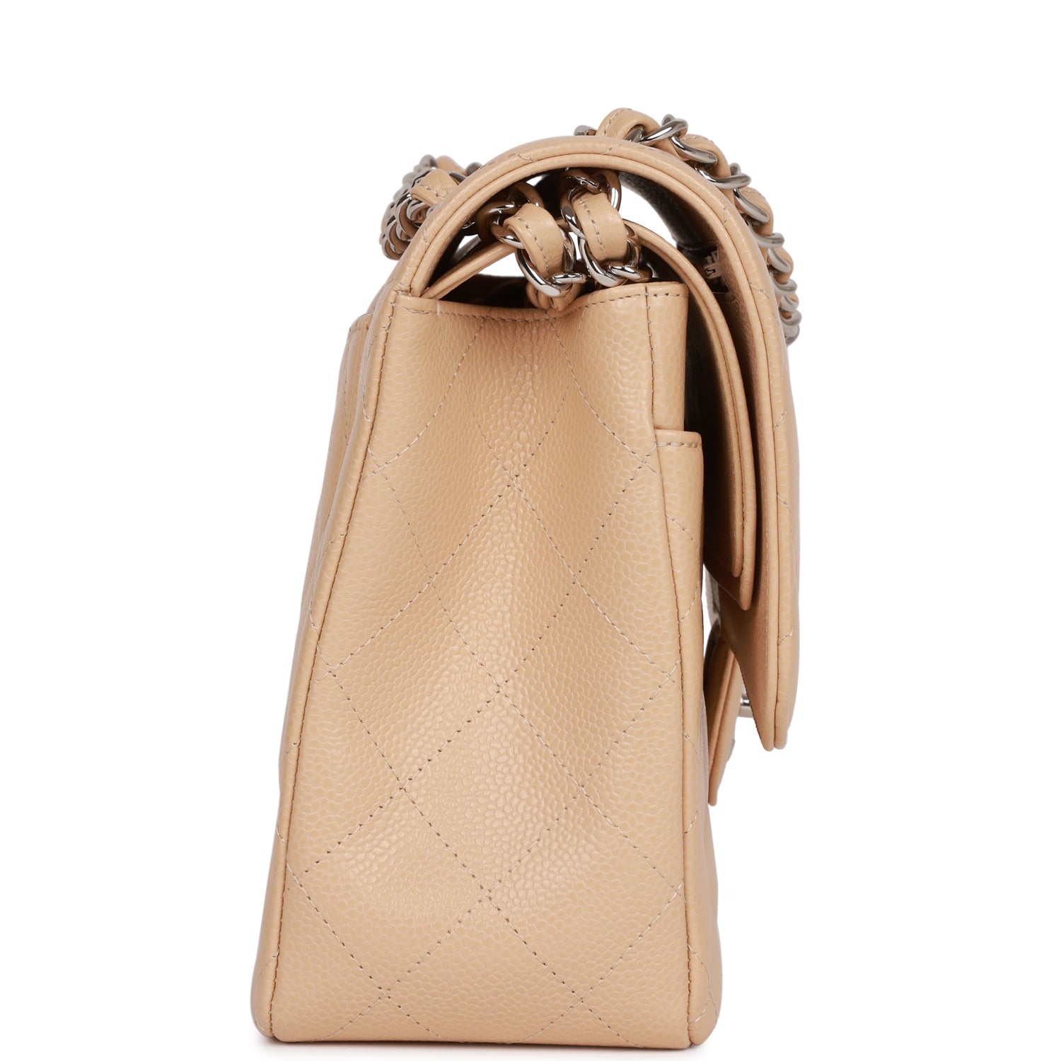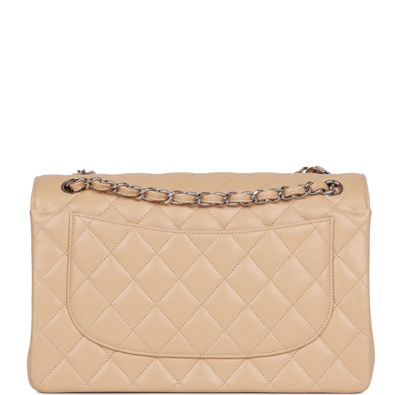 Chanel Jumbo Classic Double Flap Bag Beige Caviar Silver Hardware
