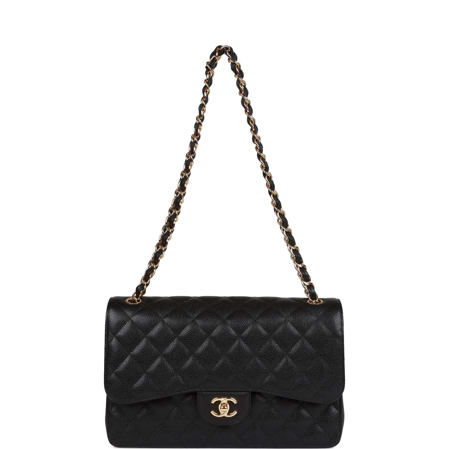 Chanel Jumbo Classic Double Flap Bag Black Caviar Gold Hardware