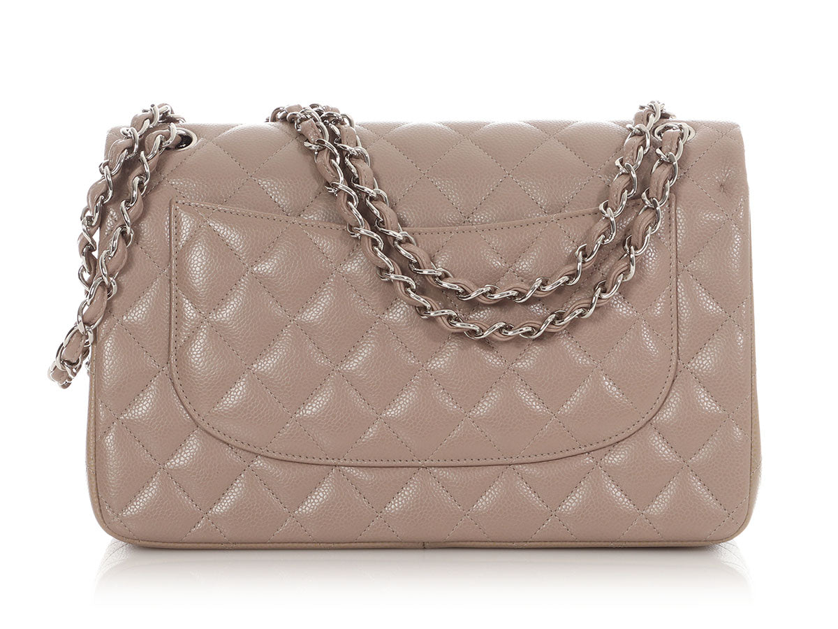 Chanel Jumbo Taupe Quilted Caviar Classic Double Flap