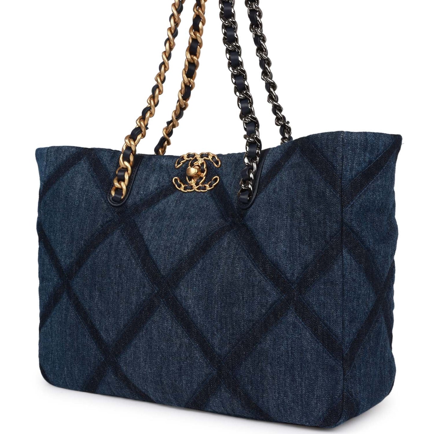 Chanel Large 19 Shopping Bag Dark Blue Denim Mixed Hardware