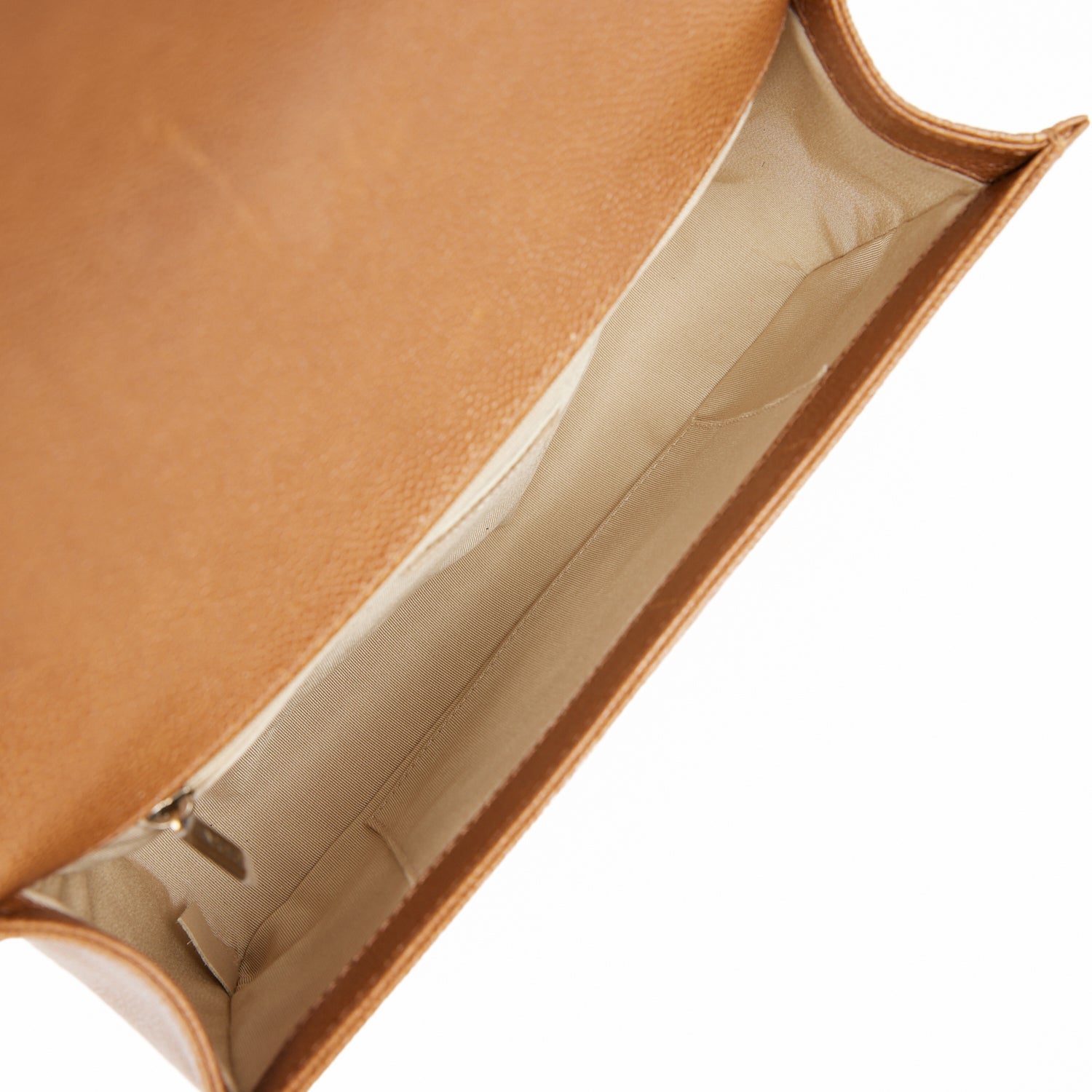 The interior is lined in beige fabric with an open pocket on rear wall.