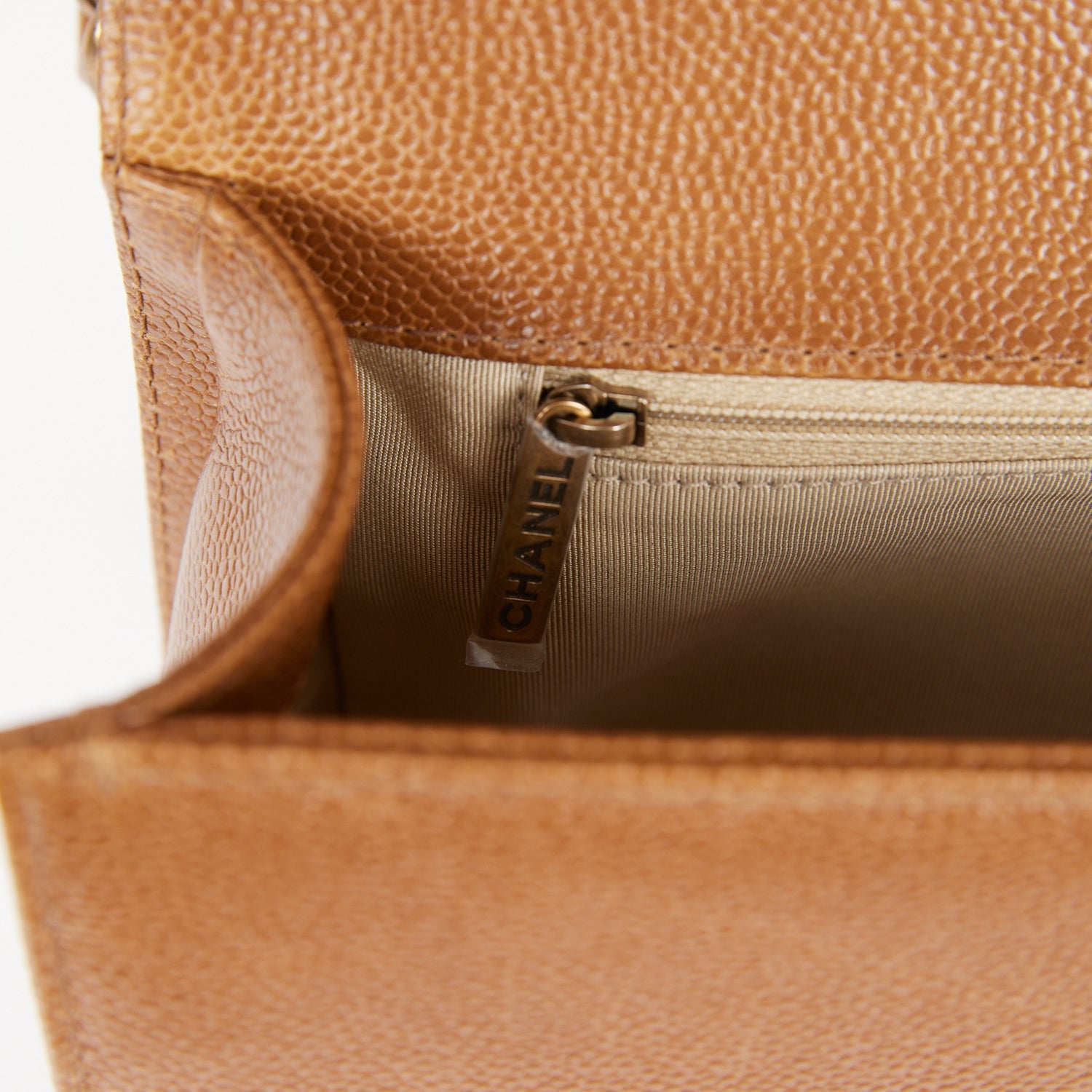 Chanel Large Boy Bag Brown Caviar Antique Gold Hardware