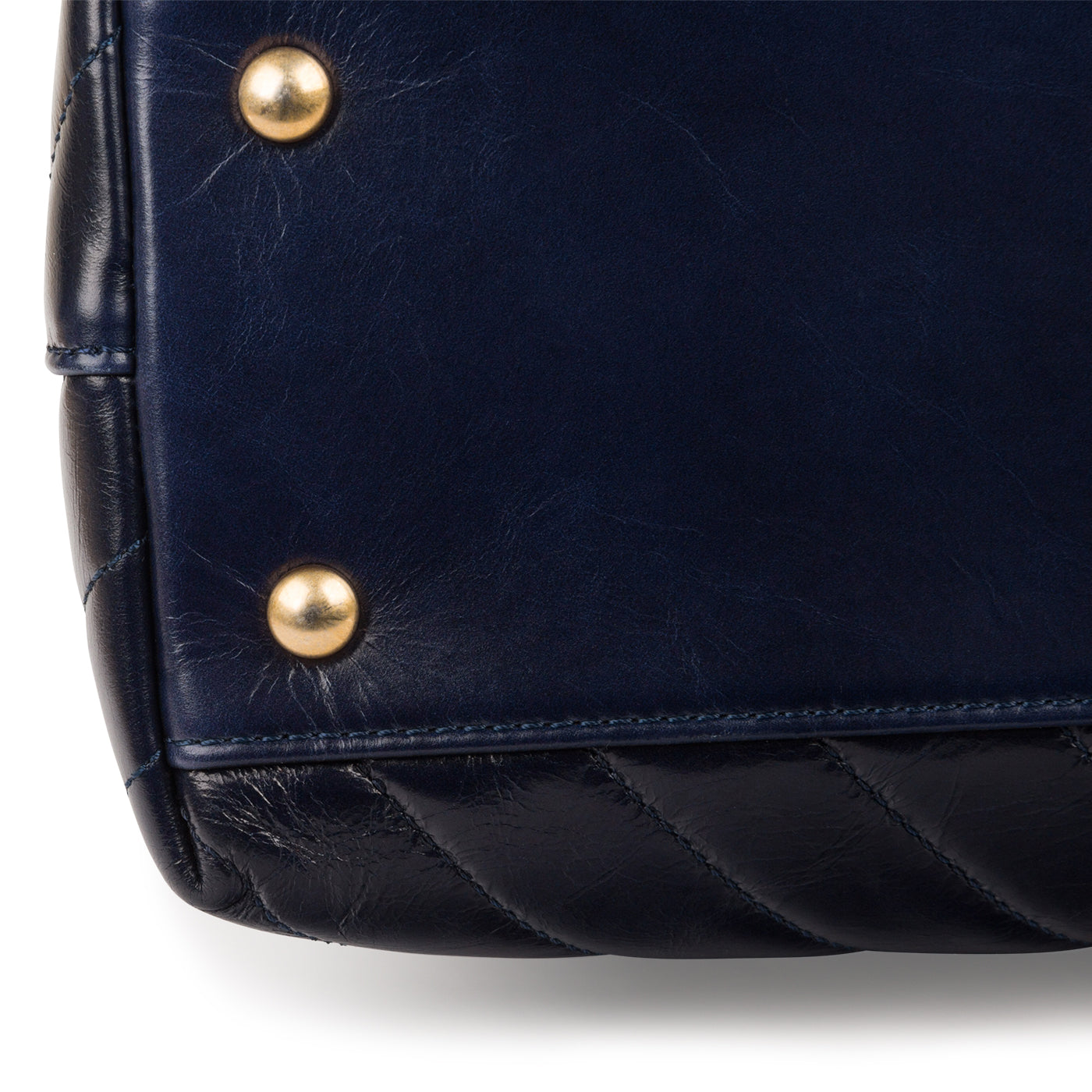 - Aged calfskin leather in deep blue hue