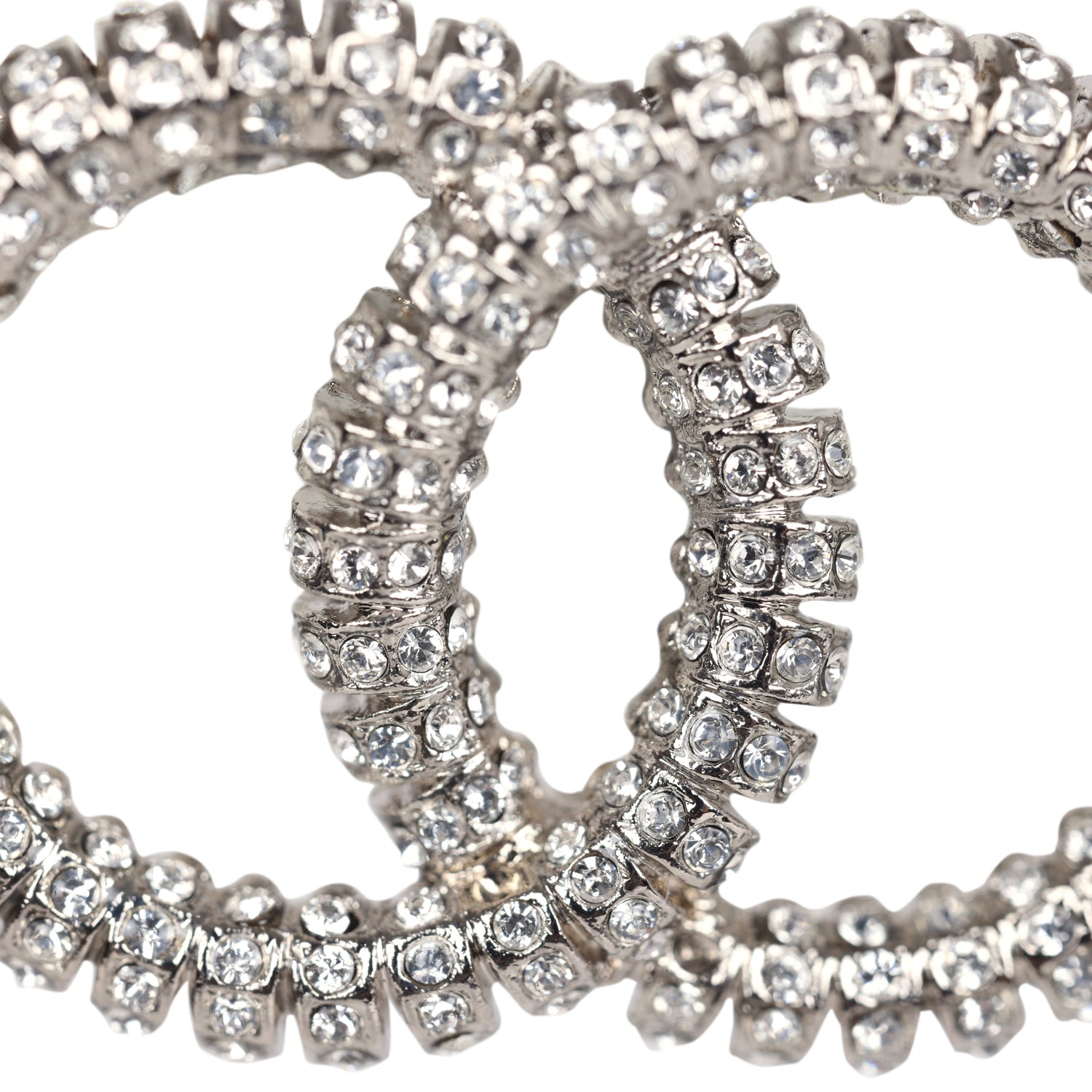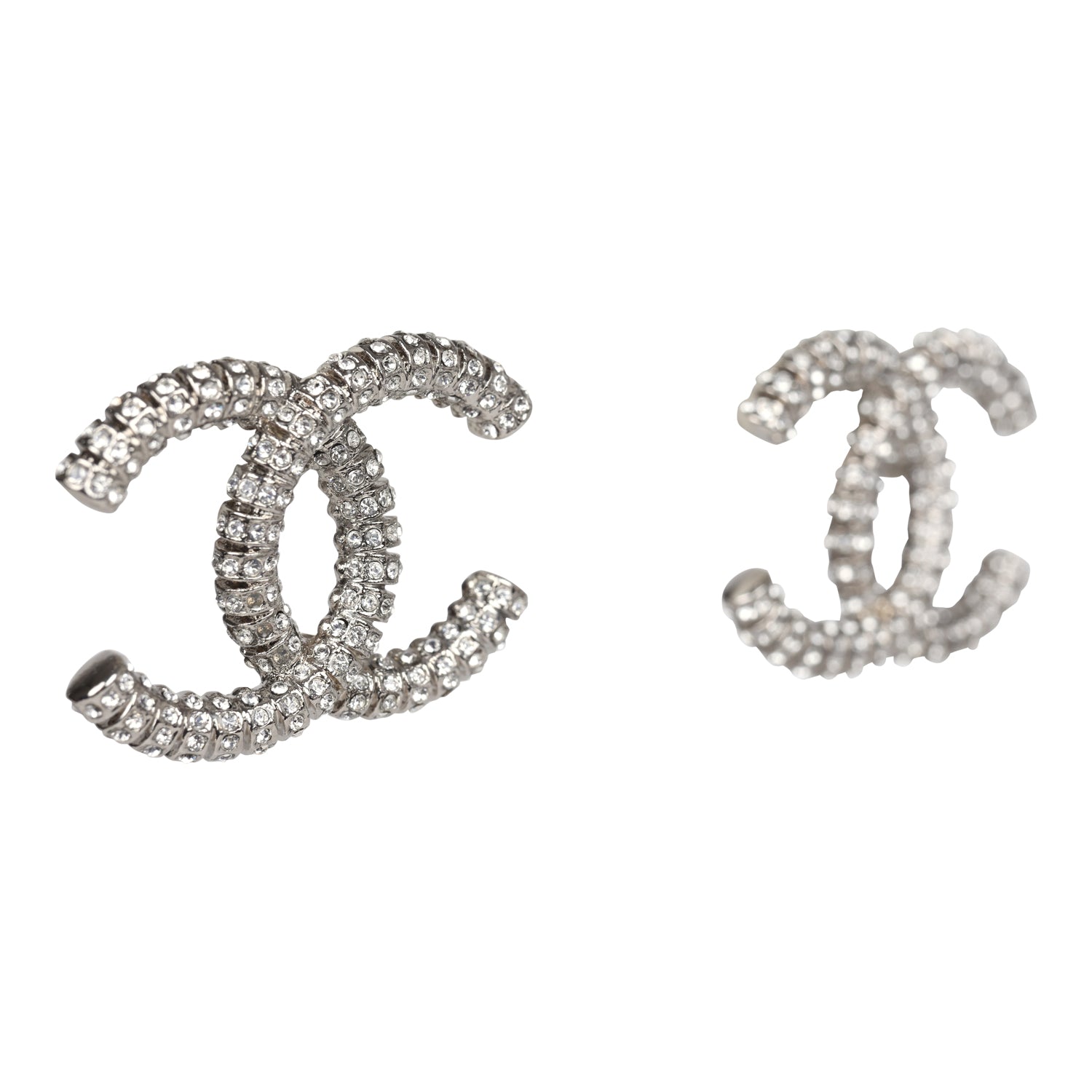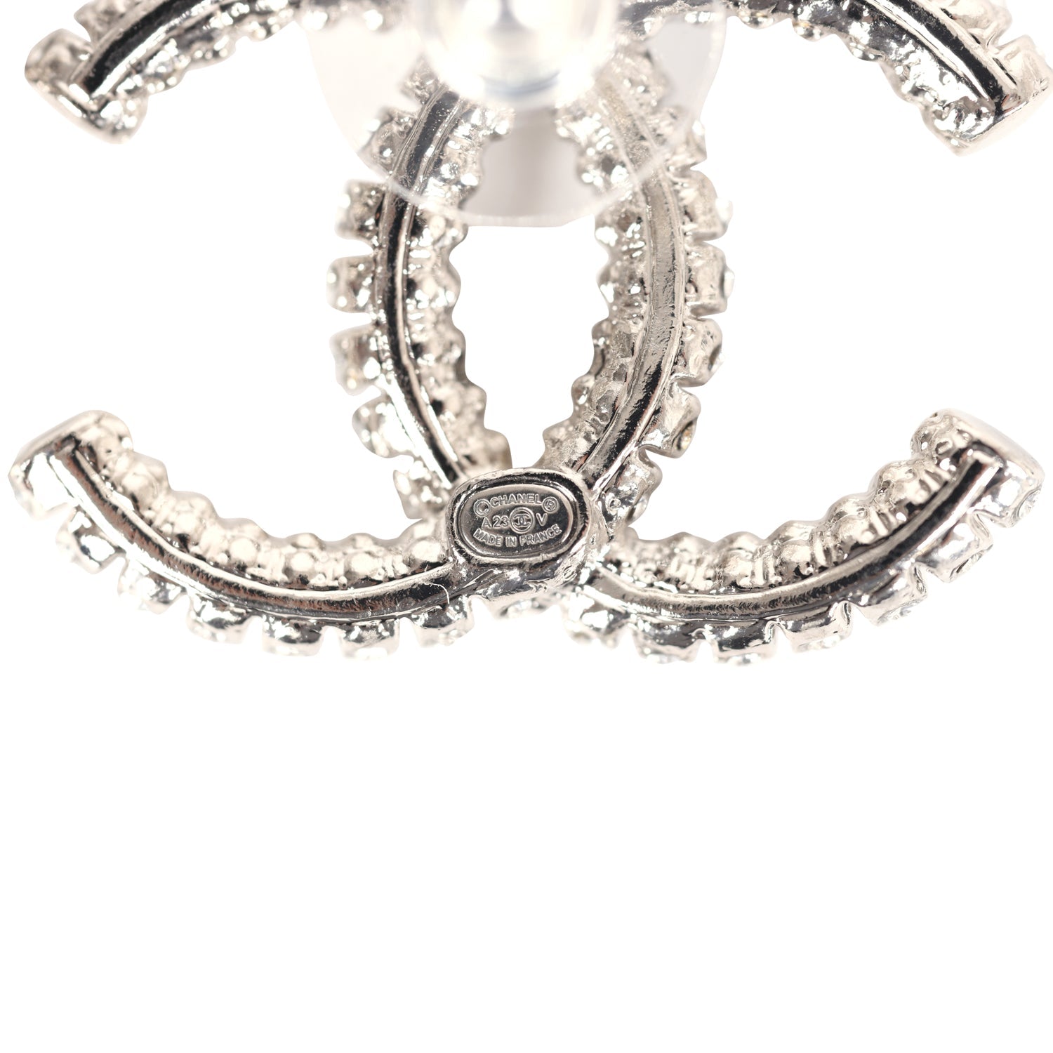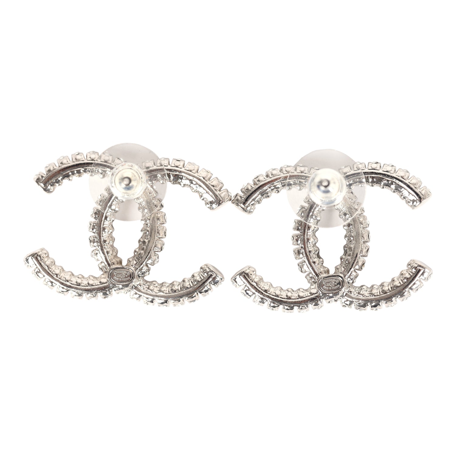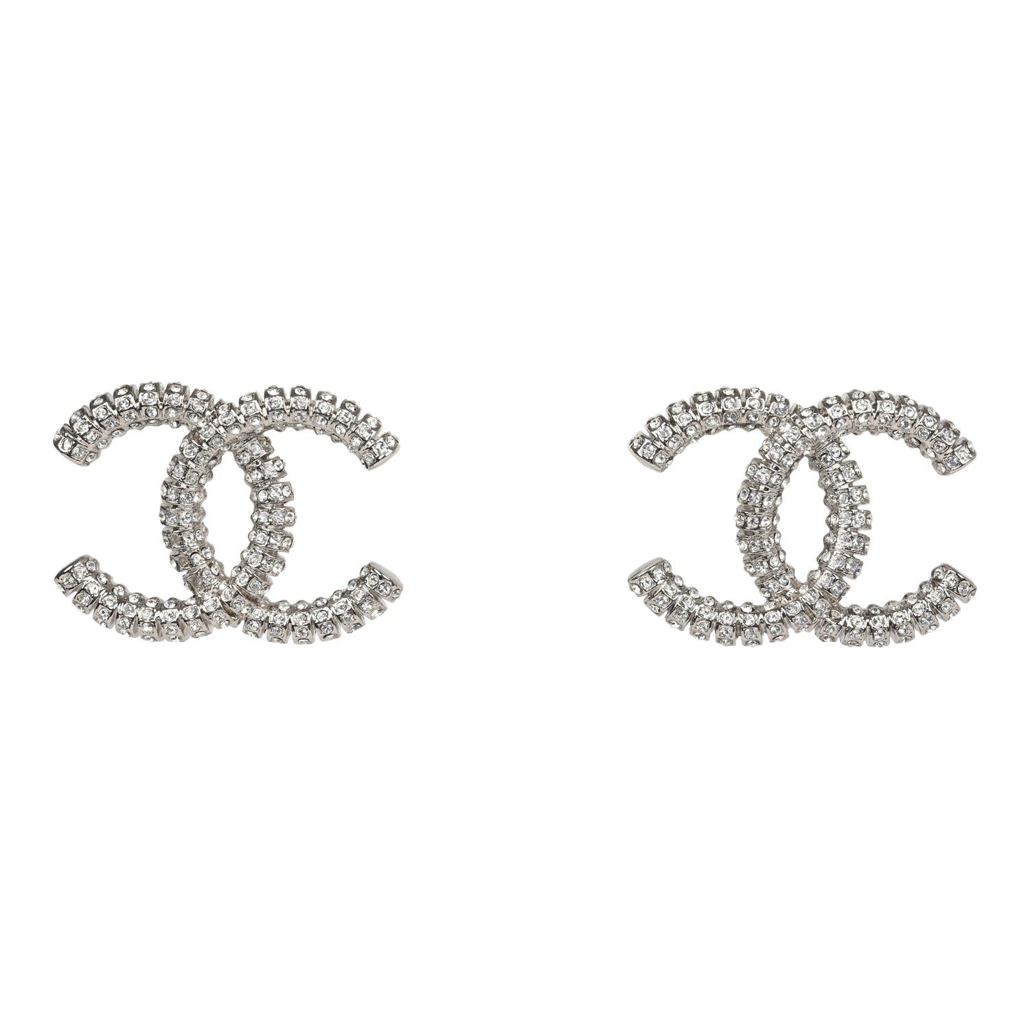 Chanel Large Crystal CC Stud Earrings Silver Hardware