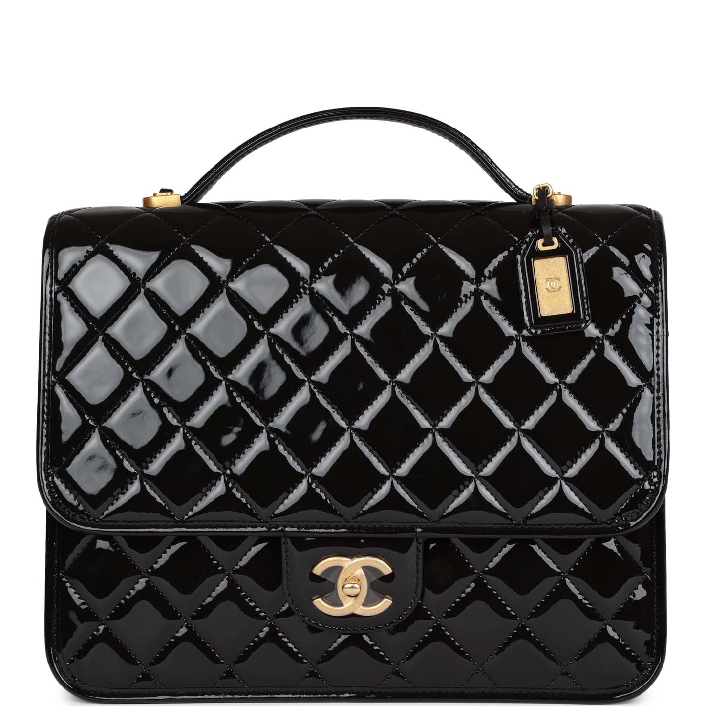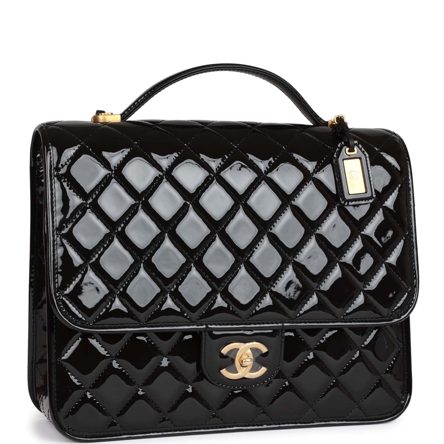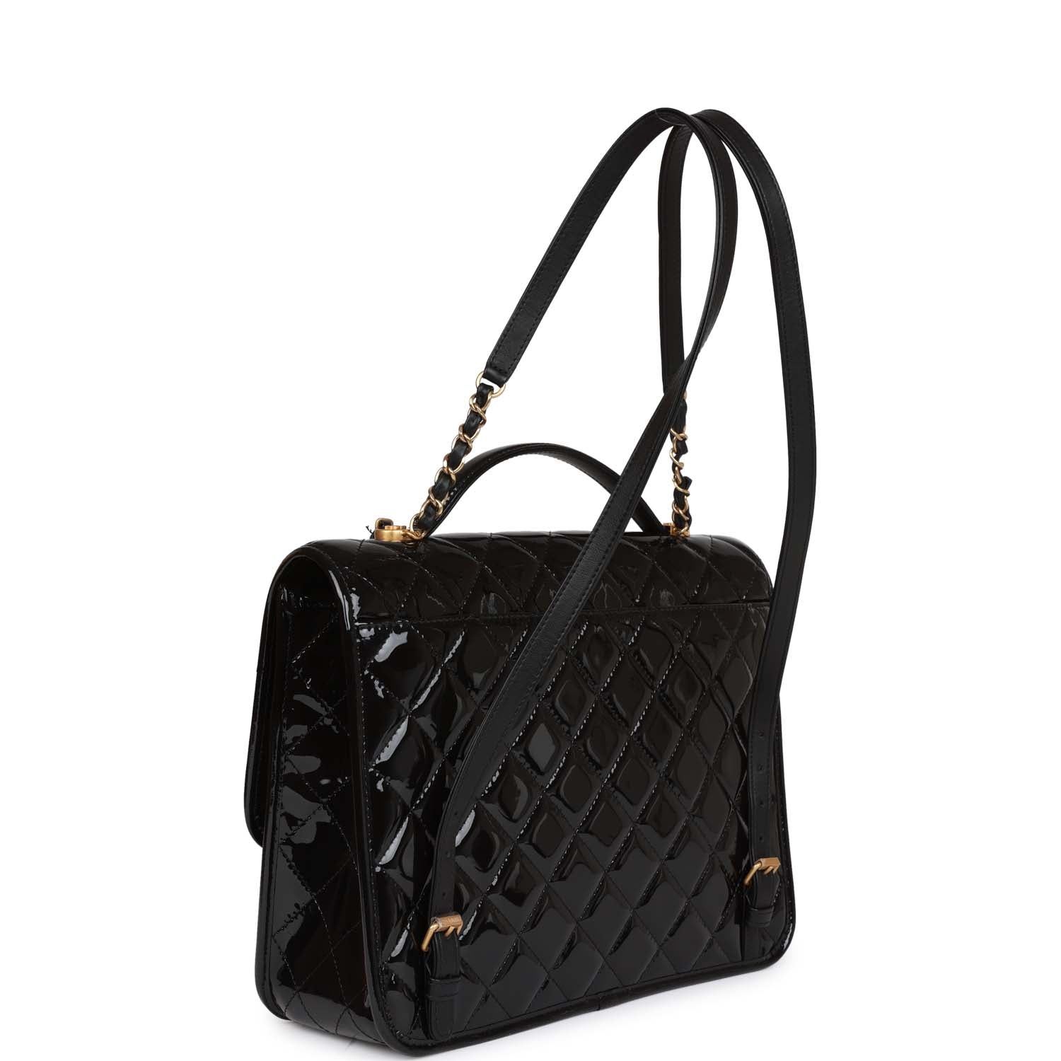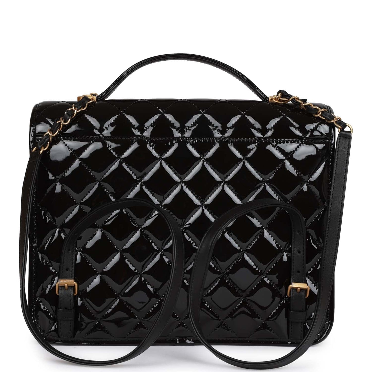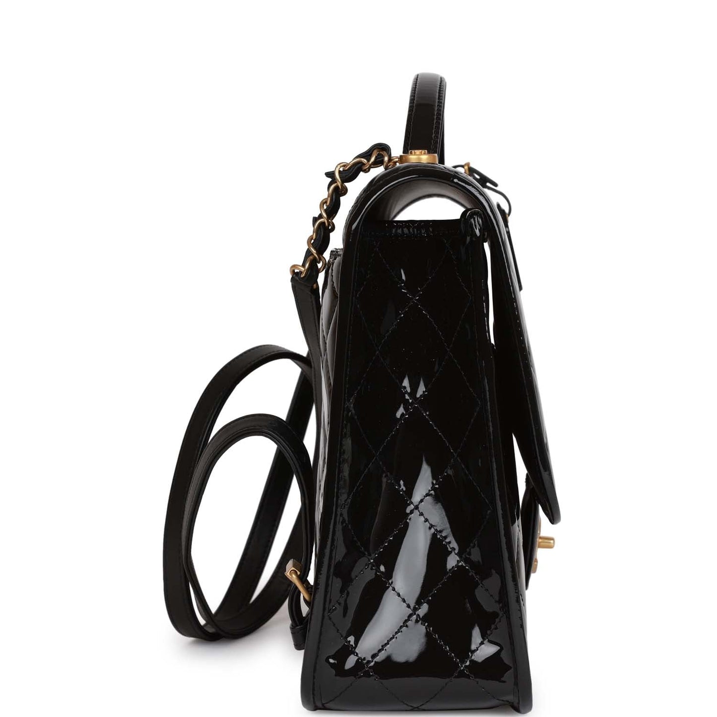 Chanel Large Flap Backpack Black Patent Antique Gold Hardware