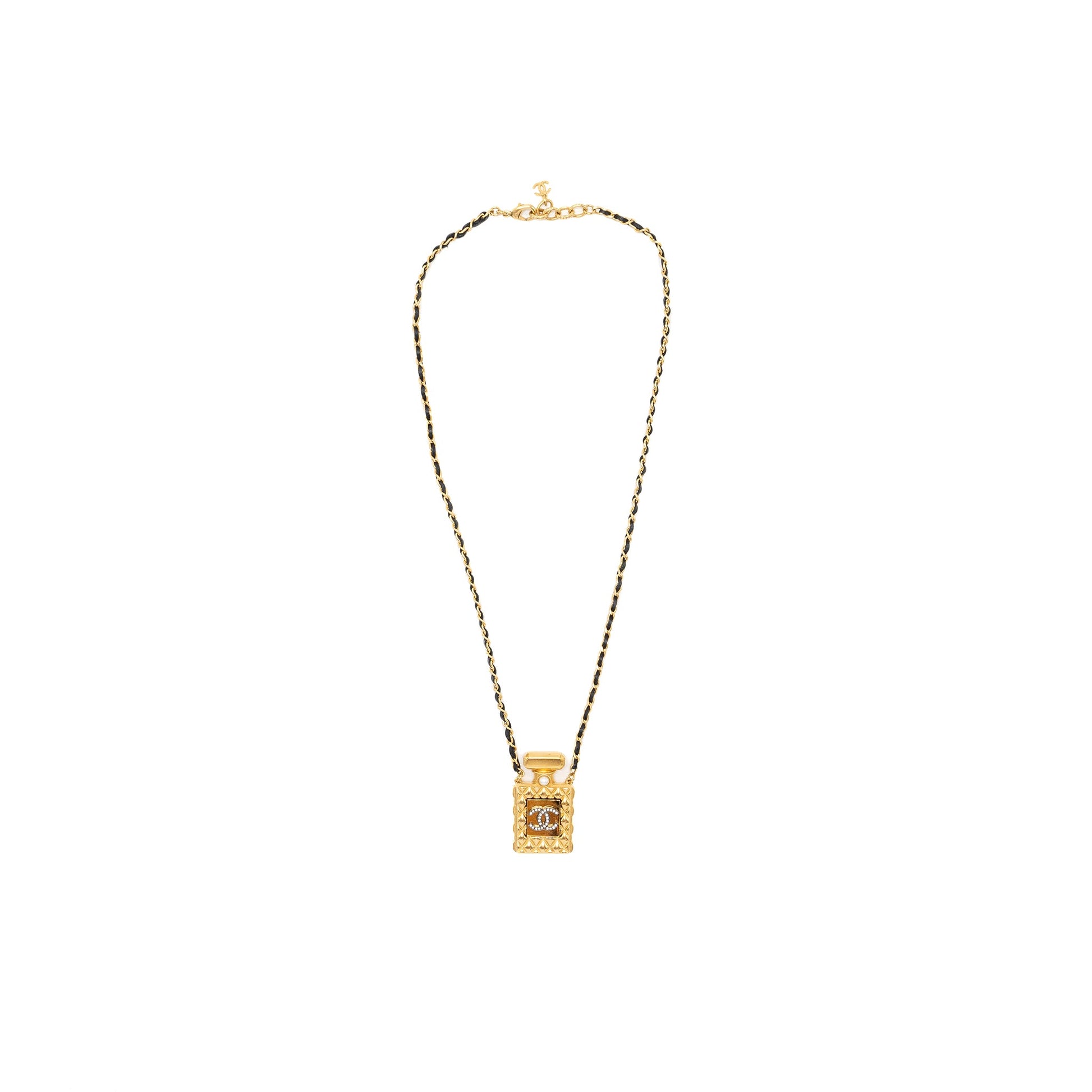 Chanel Large Model Perfume Bottle Necklace Crystal/Pearl/Gold Tone