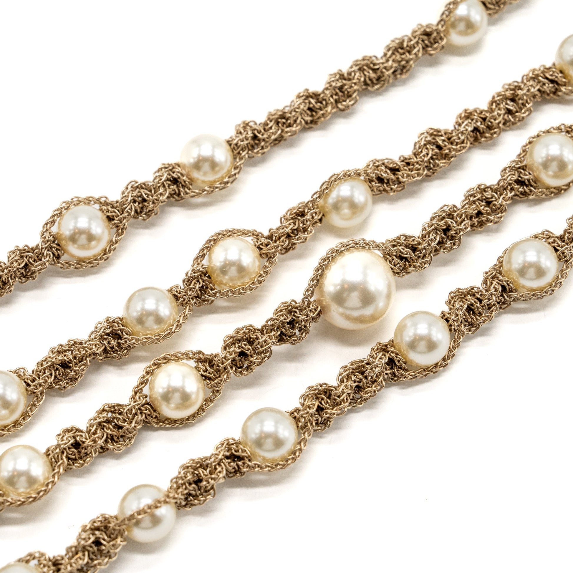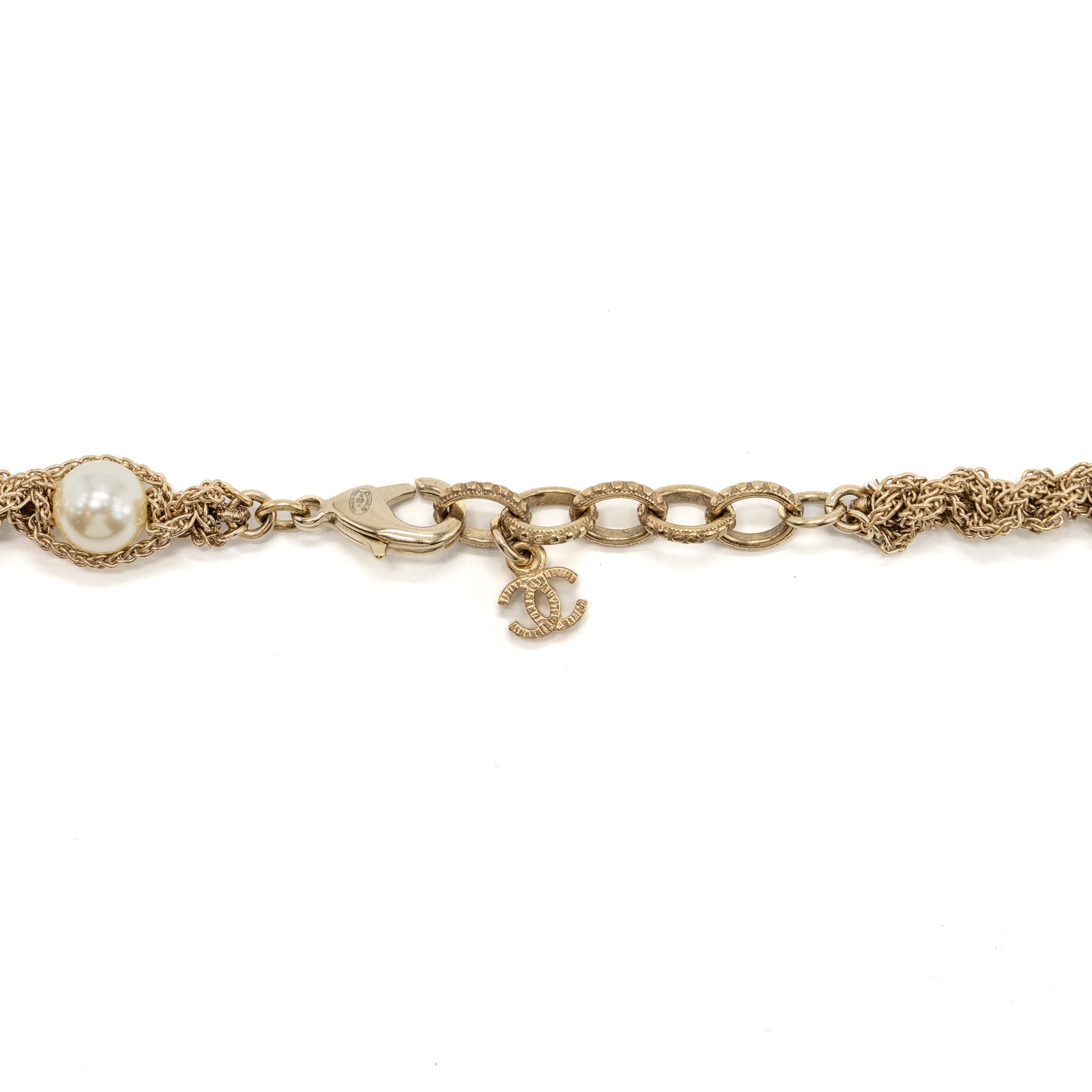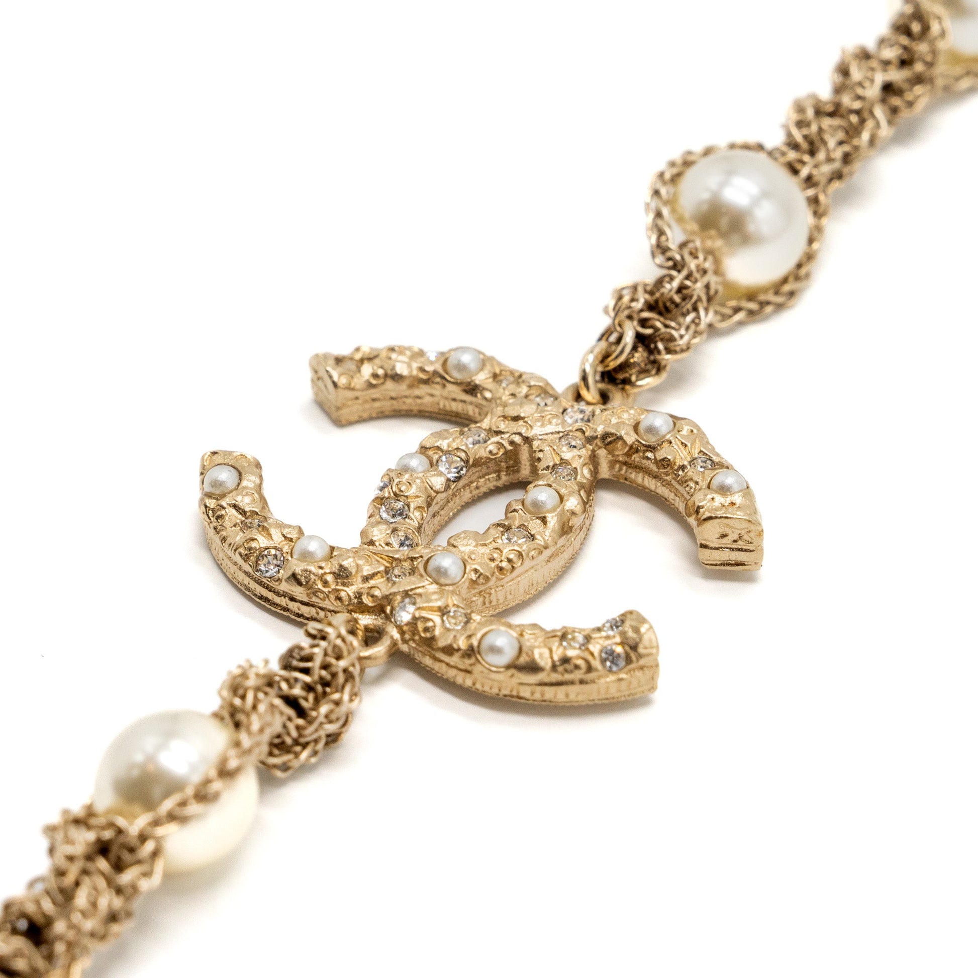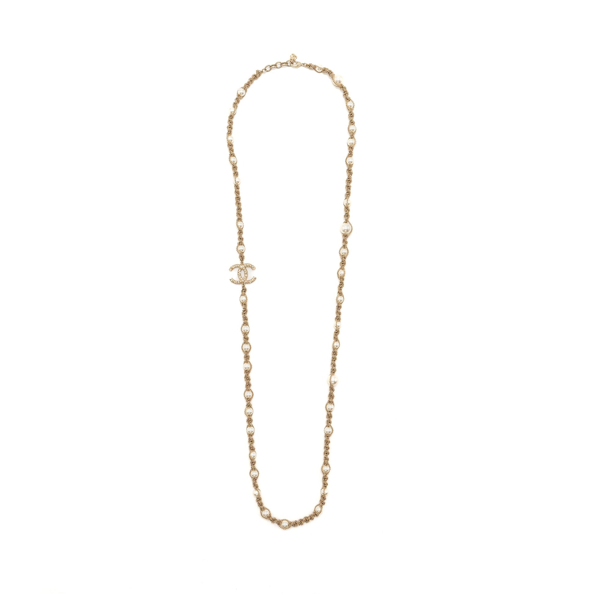 Chanel Long Necklace Pearl/CC Logo Crystal Gold Tone